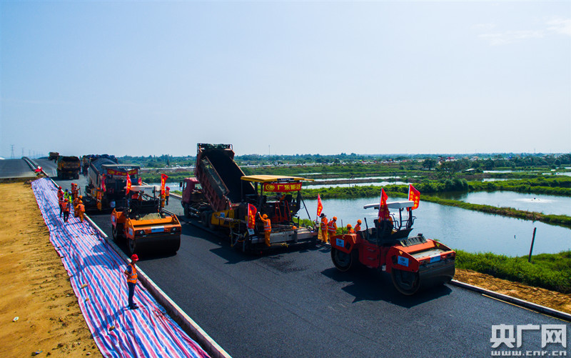 海陵島大橋今年12月建成通車(chē)(央廣網(wǎng)發(fā) 通訊員供圖) 此前于9月25日,項(xiàng)目順利完成了下面層試驗(yàn)段的攤鋪。瀝青路面下面層試驗(yàn)段定在陽(yáng)江港互通連接線,全長(zhǎng)約600m,這一試驗(yàn)段攤鋪完成,加快了互通主線全封閉施工進(jìn)程,為項(xiàng)目年底建成通車(chē)奠定了基礎(chǔ)。 海陵島大橋項(xiàng)目位于廣東省陽(yáng)江市西南部,路線起于陽(yáng)江高新區(qū)群利圍,順接陽(yáng)陽(yáng)高速公路,路線向南跨越平岡海堤與海陵灣水域后,南達(dá)陽(yáng)江市海陵島。項(xiàng)目主線全長(zhǎng)9.232公里,路基寬度26米,設(shè)計(jì)速度100公里/小時(shí),按雙向四車(chē)道高速公路標(biāo)準(zhǔn)設(shè)計(jì)。設(shè)特大橋1座、大橋4座、中小橋4座,涵洞通道19道;設(shè)陽(yáng)江港互通立交1處、終點(diǎn)平面交叉1處。
