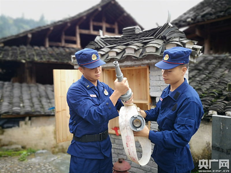檢查消防設(shè)備(央廣網(wǎng)發(fā) 貴州省消防供圖) 針對黃果樹、荔波樟江、西江苗寨、鎮(zhèn)遠(yuǎn)古鎮(zhèn)、青巖古鎮(zhèn)、肇興侗寨等節(jié)日期間游客高度聚集的重點景區(qū),督促指導(dǎo)各市州相關(guān)支隊制定節(jié)日消防安保方案,加強全省納入監(jiān)測的111家旅游景區(qū)監(jiān)管,重點對累計接待游客在5萬人次以上的18家景區(qū)開展每日巡查,在景區(qū)進(jìn)駐工作專班。同時,每日聯(lián)合相關(guān)部門,加強對景區(qū)及其周邊酒店、民宿等人員密集場所的消防安全檢查,調(diào)派警力、車輛前置景區(qū)執(zhí)勤,確保不發(fā)生有影響的火災(zāi)事故。
