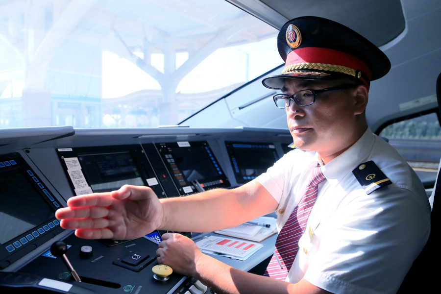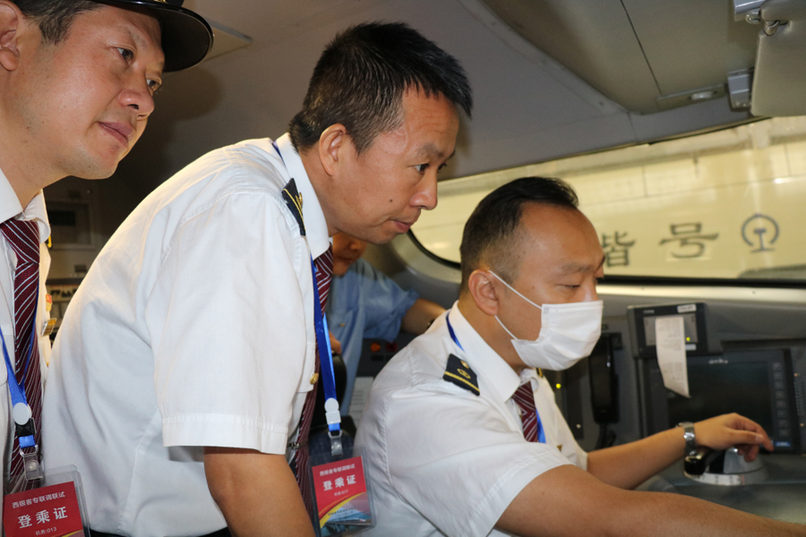動(dòng)車(chē)組駕駛員(央廣網(wǎng)發(fā) 通訊員段文超攝) 據(jù)指揮部工作人員介紹,慶城至寧縣段單列、重聯(lián)動(dòng)車(chē)組逐級(jí)提速完成后,將進(jìn)行信號(hào)系統(tǒng)測(cè)試及全線拉通試驗(yàn)。