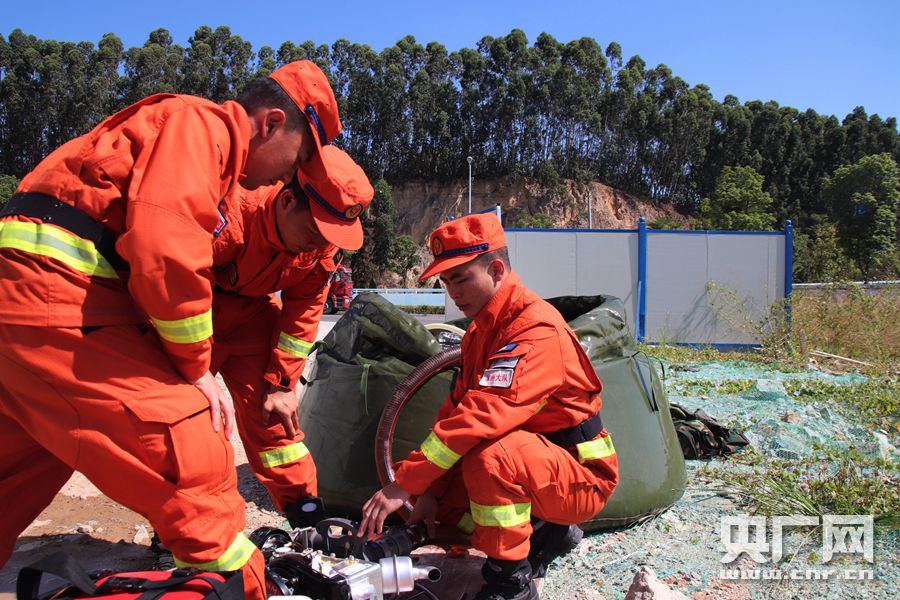 研究水泵滅火戰(zhàn)術(shù)(央廣網(wǎng)發(fā) 通訊員供圖) “報(bào)告,隊(duì)長,一組人員已全部到達(dá)火場(chǎng)附近”“收到,第一組爆破手選擇火勢(shì)較弱的地方實(shí)施爆破,打開突破口后,一組和二組人員迅速從火線東西兩側(cè)開始實(shí)施撲打,各組長是否明白……”“一組明白”“二組明白”,瞬間駐訓(xùn)場(chǎng)濃煙四起,戰(zhàn)味十足,一身紅戰(zhàn)袍,在火舌噴涌、火苗四濺的真實(shí)火場(chǎng)中揮灑汗水、錘煉隊(duì)伍作戰(zhàn)能力。常規(guī)滅火機(jī)具與水泵結(jié)合滅火,水火交融,一場(chǎng)震撼人心的森林滅火大片在駐訓(xùn)場(chǎng)強(qiáng)勢(shì)上演。