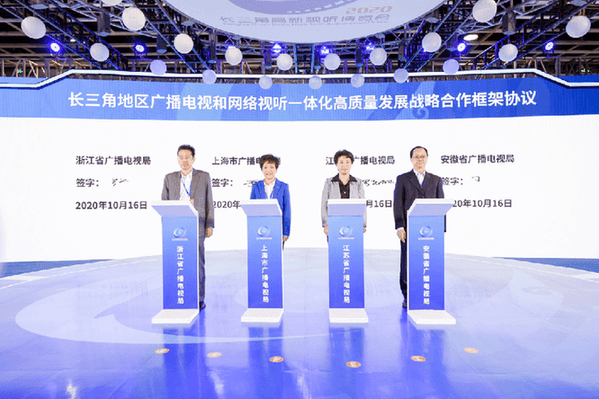 “廣播電視和網(wǎng)絡(luò)視聽行業(yè)既要當(dāng)好長三角一體化的宣傳者、記錄者,也要當(dāng)好長三角一體化的參與者、實(shí)踐者!苯K省人民政府副省長馬欣說,近年來,全省廣電系統(tǒng)深入實(shí)施記錄江蘇、高清江蘇、智慧廣電、惠民廣電工程,深化廣播電視與新一代信息技術(shù)融合創(chuàng)新,涌現(xiàn)出一批視聽內(nèi)容新成果、媒體融合新亮點(diǎn)、廣電服務(wù)新業(yè)態(tài)、廣電5G新探索,2019年,江蘇數(shù)字經(jīng)濟(jì)規(guī)模達(dá)到4萬億美元,占GDP比重超40%,位居全國前列。江蘇廣電系統(tǒng)要堅(jiān)持把建好“長三角的江蘇”作為重大歷史機(jī)遇,深入踐行新發(fā)展理念,積極服務(wù)新發(fā)展格局:“以本次活動(dòng)的舉辦為契機(jī),進(jìn)一步找準(zhǔn)定位、發(fā)揮優(yōu)勢,創(chuàng)新思路、整合資源,堅(jiān)持共商、共建、共享、共贏,與長三角兄弟省市一道,共同推動(dòng)廣電事業(yè)高質(zhì)量一體化發(fā)展,攜手共創(chuàng)長三角更加美好未來!