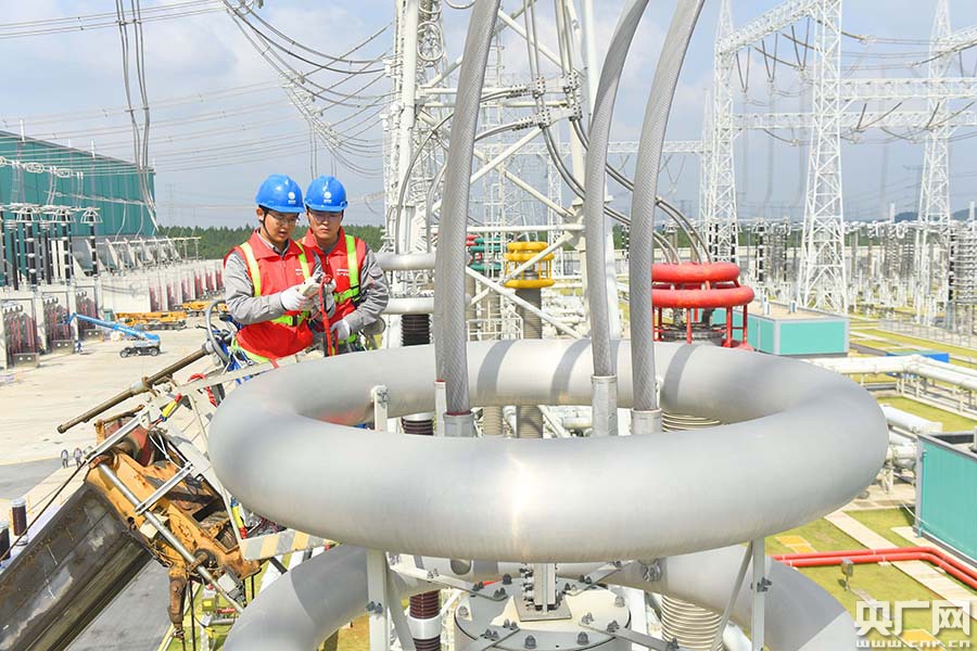 技術(shù)人員在±1100千伏特高壓直流輸電工程古泉換流站檢修電氣設(shè)備(央廣網(wǎng)發(fā) 通訊員宋衛(wèi)星 攝) 央廣網(wǎng)宣城10月25日消息(記者劉軍 通訊員宋衛(wèi)星 袁翔)2020年10月24日,技術(shù)人員在±1100千伏特高壓直流輸電工程古泉換流站的室外對(duì)年度檢修完成的電氣設(shè)備進(jìn)行送電前驗(yàn)收,確!坝宥榷逼陂g電網(wǎng)安全穩(wěn)定運(yùn)行。當(dāng)日,隨著技術(shù)人員對(duì)±1100千伏特高壓直流輸電工程古泉換流站全站檢修設(shè)備驗(yàn)收結(jié)束,標(biāo)志著目前世界電壓等級(jí)最高、輸送容量最大、送電距離最遠(yuǎn)的新疆昌吉—安徽古泉±1100千伏特高壓直流輸電工程完成首次年度“體檢”,搶在冬季用電高峰前完成該站及昌吉-古泉直流線路安徽段的雙極停電檢修,按計(jì)劃并入電網(wǎng)運(yùn)行,為安徽及長(zhǎng)三角地區(qū)的群眾溫暖過(guò)冬貢獻(xiàn)力量。