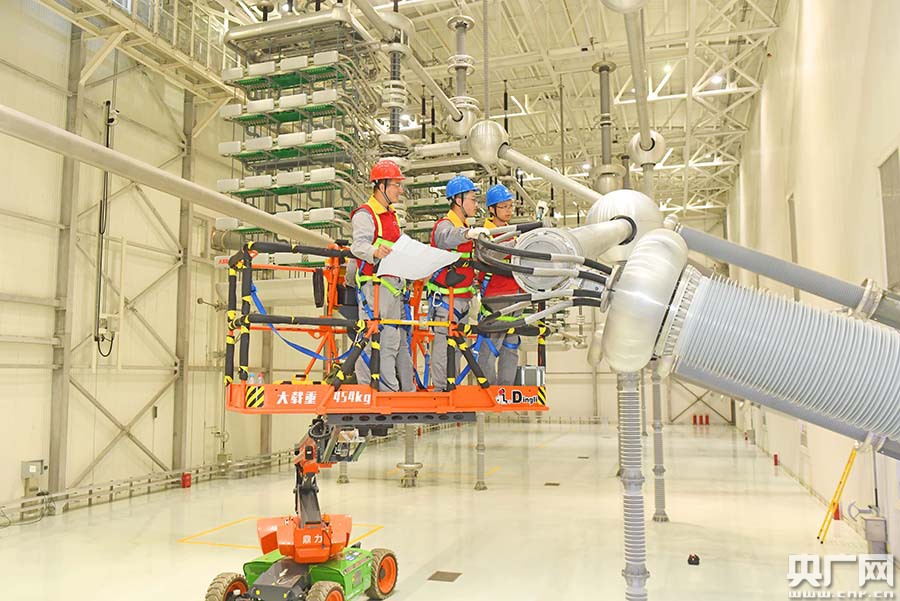 技術(shù)人員在古泉換流站的閥廳內(nèi)對(duì)年度檢修完成的電氣設(shè)備進(jìn)行送電前驗(yàn)收(央廣網(wǎng)發(fā) 通訊員宋衛(wèi)星 攝) 據(jù)古泉換流站負(fù)責(zé)人介紹,此次檢修對(duì)世界上最大換流變、最高戶內(nèi)直流場(chǎng)、最復(fù)雜的網(wǎng)側(cè)交流系統(tǒng)分層接入等多個(gè)世界先進(jìn)設(shè)備展開(kāi)檢修,為提高設(shè)備健康水平、保障“疆電入皖”大通道安全穩(wěn)定、持續(xù)推進(jìn)新疆資源優(yōu)勢(shì)轉(zhuǎn)化產(chǎn)業(yè)和經(jīng)濟(jì)優(yōu)勢(shì)。來(lái)自安徽省送變電工程公司、檢修公司等施工單位的900余名技術(shù)人員歷時(shí)13天對(duì)全站電氣設(shè)備進(jìn)行104項(xiàng)消缺、86項(xiàng)例行檢修、56項(xiàng)特殊檢修、14項(xiàng)隱患治理、6項(xiàng)技術(shù)改造及4項(xiàng)軟件升級(jí)。