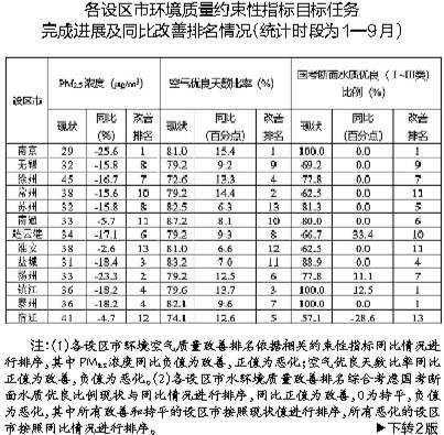 江蘇發(fā)布9月環(huán)境質(zhì)量約束性指標(biāo)目標(biāo)任務(wù)完成進(jìn)展