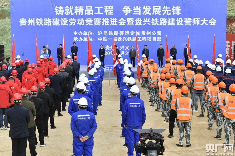 10月31日,盤興鐵路建設(shè)勞動競賽現(xiàn)場。(央廣網(wǎng)發(fā) 牛榮健 攝) 央廣網(wǎng)貴陽11月1日消息(記者陳屹)10月31日,貴州鐵路建設(shè)勞動競賽推進(jìn)會暨盤興鐵路建設(shè)誓師大會在貴州省黔西南州興義市建設(shè)工地現(xiàn)場舉行。橋隧比達(dá)90.66%的貴州省“市市通高鐵”最后一個項(xiàng)目,新建六盤水盤州市至黔西南州興義市的盤興鐵路項(xiàng)目施工進(jìn)入沖刺大干階段。 在主題為“鑄就精品工程 爭當(dāng)發(fā)展先鋒”的勞動競賽誓師大會現(xiàn)場,貴州省總工會副主席楊杰說,貴州省是西部大開發(fā)的重要戰(zhàn)略支點(diǎn),是新時代構(gòu)建西部大開發(fā)新格局、推動西部地區(qū)高質(zhì)量發(fā)展的重要力量。2020年是貴州省全面建成小康社會和“十三五”規(guī)劃的收官之年,也是貴州省鐵路建設(shè)極其重要的一年。在盤興鐵路建設(shè)現(xiàn)場舉行的貴州省鐵路建設(shè)勞動競賽推進(jìn)會,將全力推動貴州省中長期鐵路網(wǎng)規(guī)劃項(xiàng)目落實(shí)落地。 盤興鐵路是貴州省“市市通高鐵”的最后一個項(xiàng)目,計劃正線全長98.314公里,設(shè)計時速250公里,橋隧比達(dá)90.66%,工程總投資135.4億元,批復(fù)工期4年,新建保田、興義南站,改擴(kuò)建盤州站,預(yù)計2024年建成開通。據(jù)悉,中鐵一局盤興項(xiàng)目今年7月進(jìn)場,9月30日,項(xiàng)目首鉆開工,拉開了項(xiàng)目建設(shè)序幕,重點(diǎn)控制性工程老鷹巖隧道出口已完成臨建、金州隧道出口天溝開始開挖、危巖落石處理已完成,目前項(xiàng)目所面臨的征地拆遷、隧道口清表正有序推進(jìn)。 中鐵一局盤興鐵路參建員工宣誓了對加快推進(jìn)鐵路建設(shè),持續(xù)掀起施工大干,優(yōu)質(zhì)高效完成工程建設(shè)目標(biāo)的信心和決心。 新建盤州至興義鐵路是貴州省實(shí)現(xiàn)“市市通高鐵”最后一個項(xiàng)目,線路建成后,黔西南州及周邊地區(qū)將融入國家高鐵網(wǎng)。貴州省會城市貴陽至省內(nèi)各市州行政中心所在地將形成1至2小時的高速交通圈,對加速促進(jìn)區(qū)域經(jīng)濟(jì)一體化和貴州省的脫貧攻堅戰(zhàn)成果鞏固具有重大戰(zhàn)略意義。 |