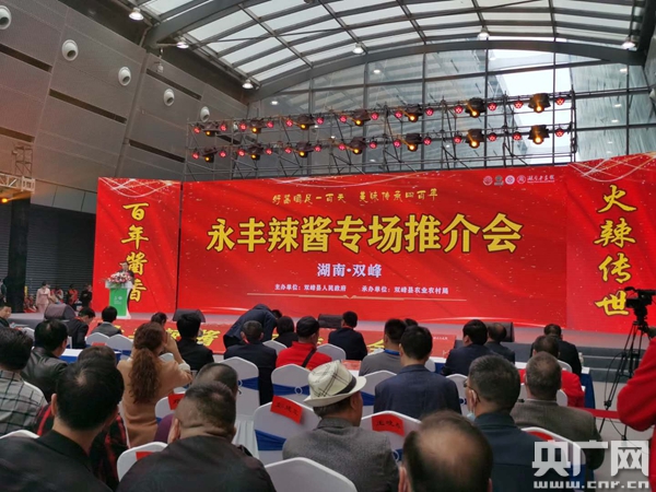 永豐辣醬專場推介會(央廣網(wǎng)發(fā) 記者鄧文輝攝) 本屆農(nóng)博會展覽面積11萬平方米,吸引了中部六省及黑龍江、四川、廣東、貴州、云南等20余個兄弟省、市,4161家企業(yè)參展,參展種類達2.8萬余種,涵蓋了扶貧成果、農(nóng)業(yè)配套服務(wù)、智慧農(nóng)業(yè)、人居環(huán)境、品牌農(nóng)產(chǎn)品、農(nóng)機農(nóng)資、食品加工、美食文化、食材、藥材、品牌產(chǎn)業(yè)等類別,規(guī)模更大、質(zhì)量更高、服務(wù)更優(yōu)、成效更好,農(nóng)博會散發(fā)出越來越大的魅力。 本屆農(nóng)博會首次邀請中部六省攜12個區(qū)域公用品牌集中亮相中國中部農(nóng)產(chǎn)品品牌推介會(代開幕式),12位代言人紛紛上臺推介,進一步提升了區(qū)域公用品牌的知名度,為推進中部地區(qū)農(nóng)業(yè)供給側(cè)改革,實施鄉(xiāng)村振興戰(zhàn)略注入新的活力。 此外,湖南和山西兩省農(nóng)業(yè)農(nóng)村廳簽訂了農(nóng)業(yè)合作框架協(xié)議,將在特色優(yōu)勢產(chǎn)業(yè)、農(nóng)業(yè)生產(chǎn)技術(shù)、農(nóng)產(chǎn)品區(qū)域品牌培育、人才交流等方面開展深度合作。