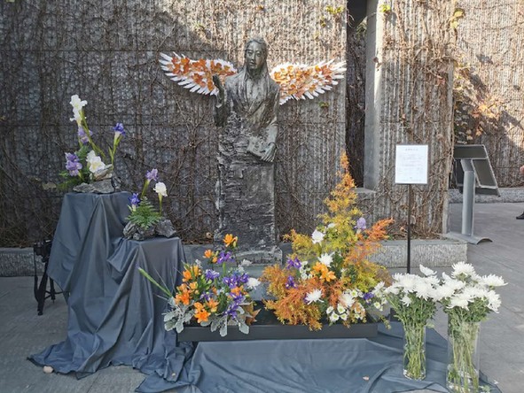 11月9日是美國(guó)華裔作家張純?nèi)绲募扇眨?dāng)天上午,侵華日軍南京大屠殺遇難同胞紀(jì)念館在館內(nèi)的張純?nèi)绲裣袂芭e行“勇敢的天使”花語(yǔ)祭奠活動(dòng),用鮮花緬懷這位無(wú)法忘卻歷史的作家。