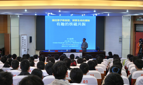 傳承華羅庚精神,爭做時代棟梁。11月12日,由中國科學(xué)院、中央宣傳部、教育部、科學(xué)技術(shù)部、中國工程院、中國科協(xié)主辦,中共常州市金壇區(qū)委、常州市金壇區(qū)政府承辦的華羅庚同志誕辰110周年活動將在常州金壇舉辦。12日下午,中國科學(xué)院院士葉朝輝來到了金壇區(qū)第四中學(xué),作《操控原子核自旋,探索生命奧秘——有趣的核磁共振波譜學(xué)》主題報告,他用通俗易懂的方式,為同學(xué)們講述核磁共振波譜學(xué)的奧秘。