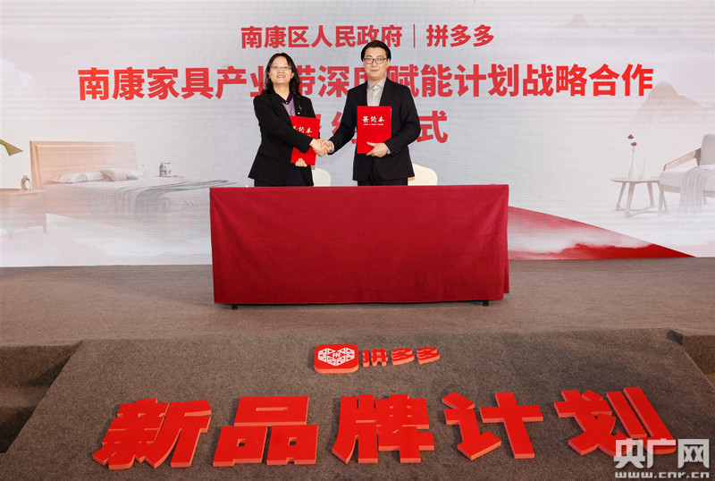 南康家具產(chǎn)業(yè)帶深度賦能計劃簽署(央廣網(wǎng)發(fā) 通訊員供圖) 央廣網(wǎng)贛州11月16日消息(記者謝元森 通訊員沈漢華)11月16日,江西贛州市南康區(qū)與知名電商平臺拼多多簽署南康家具產(chǎn)業(yè)帶深度賦能計劃戰(zhàn)略合作框架協(xié)議。在國內(nèi)國際雙循環(huán)的背景下,南康家具產(chǎn)品聯(lián)手電商平臺,持續(xù)做強產(chǎn)業(yè)品牌。目前,“在新品牌計劃”的框架下,拼多多平臺上已涌現(xiàn)出聯(lián)圓世家、優(yōu)居未來、匯明創(chuàng)家等一批產(chǎn)業(yè)帶家具品牌。 11月16號,在南康家具新品牌計劃大會上,拼多多副總裁陳秋表示,未來五年,平臺將聯(lián)合南康優(yōu)秀家具制造企業(yè),通過‘反向定制、品銷合一’的模式,幫助南康孵化20個十億級家具品牌。接下來,我們的新品牌實驗室會向南康的合作企業(yè)全面的開放我們的發(fā)展模型以及我們的需求大數(shù)據(jù)。在這個基礎(chǔ)之上,我們平臺的百億補貼也會針對這些優(yōu)質(zhì)的定制化產(chǎn)品,實施一個全面的加持,以及我們的秒評事業(yè)群也會加入進來,幫助這些產(chǎn)業(yè)帶的企業(yè)實現(xiàn)一個更加精準(zhǔn)的測款,從而來幫助他們實時的進行一個更合理的生產(chǎn)規(guī)劃。”