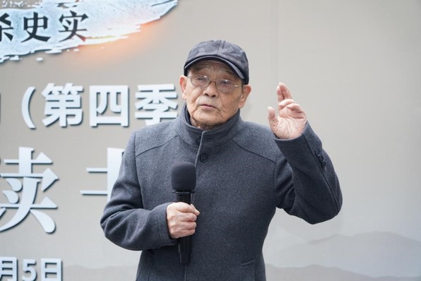南京工程學(xué)院讀書會成員朗誦《拉貝的訴說》 87歲的南京大屠殺幸存者路洪才現(xiàn)場講述了自己和家人在南京大屠殺時期的經(jīng)歷。路洪才說,當年他還是一個孩童,家住老門東,家里有10個人。雖然家人在日軍到來之前就挖好了地洞躲藏,但家中6人還是被殘忍殺害了。他說:“留給我們這些幸存者的時間所剩不多了,但這些慘痛的歷史一定要一代一代傳下去,我們一定要堅決反對戰(zhàn)爭,舉起和平的大旗,讓我們后人能夠代代在和平、和諧、平安的環(huán)境中成長!