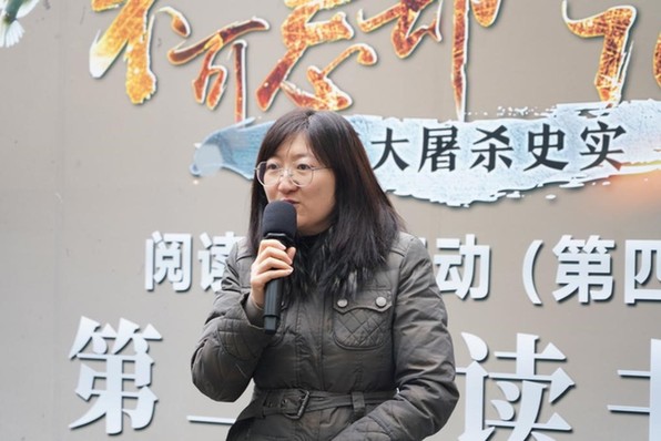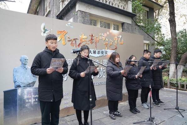 南京大學(xué)拉貝紀念館暨拉貝國際和平與沖突化解研究交流中心主任楊善友講解 來自南京工程學(xué)院的大學(xué)生讀書會成員朗誦了詩歌《拉貝的訴說》。