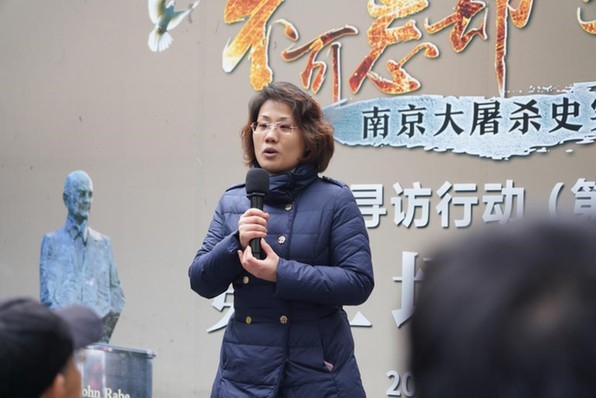 南京大屠殺幸存者路洪才講述 南京大屠殺幸存者夏淑琴的外孫女夏媛講述了夏淑琴當年在安全區(qū)得到救助的經(jīng)過。夏媛難抑心中激動,含淚回憶起了當年外婆一家悲慘遭遇。她說,當年夏淑琴被日軍殘忍地捅了三刀,至今后背上仍然有三個觸目驚心的刀疤!胺浅8兄x拉貝先生和國際友人當年成立的南京安全區(qū),保護了許多中國人的生命,也正是因為拉貝先生他們的無私義舉,外婆才能得以存活。”
