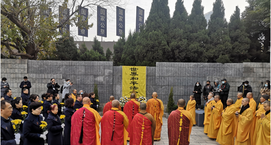 2020年12月13日下午3點,在第七個南京大屠殺死難者國家公祭日之際,中國60多名僧侶及信眾聚集在“南京大屠殺遇難者名單墻”前舉行“世界和平法會”。