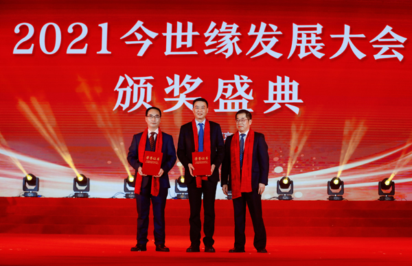 今世緣酒業(yè)黨委書記、董事長(zhǎng)周素明為“十三五”功勛頒獎(jiǎng)(席航飛 攝) 活動(dòng)現(xiàn)場(chǎng)頒發(fā)了今世緣2020年“優(yōu)秀合作伙伴獎(jiǎng)”“精誠(chéng)合作獎(jiǎng)”“卓越合作伙伴”“十三五”功勛,今世緣“結(jié)善緣”愛心大使,“緣夢(mèng)公益之星”等獎(jiǎng)項(xiàng)。同時(shí),還舉辦了《今世緣·等著我》特別節(jié)目、《今世緣·等著我》愛心紀(jì)念酒發(fā)布及公益義賣,“緣夢(mèng)基金”捐款儀式等活動(dòng)。