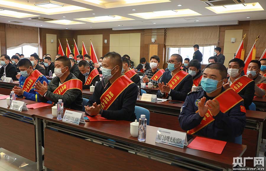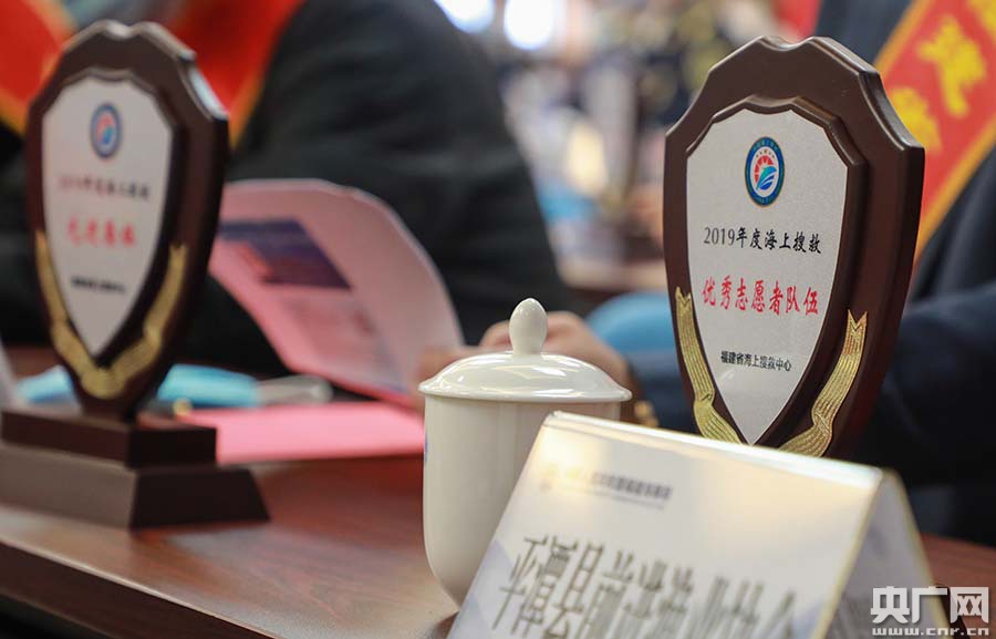 表彰會現(xiàn)場(央廣網(wǎng)發(fā) 福建海事供圖) 會上特別表彰了兩名杰出代表:一是2019年10月6日,“嘉良1”輪在臺灣海峽南部海域突遇大風(fēng)浪翻覆沉沒,船上13名船員遇險。附近作業(yè)的漁船“閩東漁61165”在漳州市海上搜救中心協(xié)調(diào)下,全速趕往遇險海域,克服惡劣氣象條件展開救助,第一時間將13名落水人員全部救起,獲得2019年度國家海上搜救獎勵福建省最高獎金4萬元;第二是廈門市曙光救援隊作為全省人數(shù)最多的海上搜救志愿者隊伍,長期堅持海上搜救工作,2019年成功開展近岸救援21起,營救22人,有效保障了廈門濱海旅游區(qū)水上安全形勢穩(wěn)定,獲福建省海上搜救獎勵最高獎金3萬元。