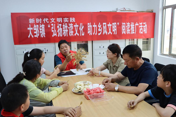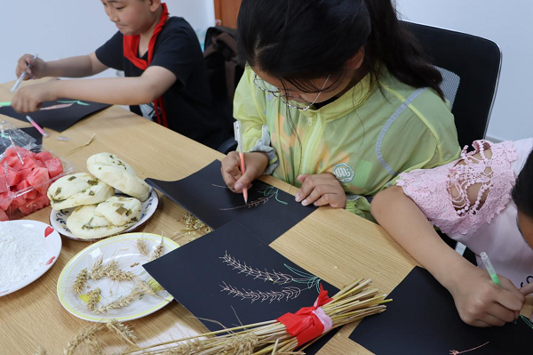 田野間,機(jī)聲隆隆,三夏正忙;農(nóng)家書(shū)屋里,麥香濃濃,學(xué)習(xí)正酣……日前,一場(chǎng)別開(kāi)生面的農(nóng)耕文化閱讀推廣活動(dòng)在江蘇泰州興化市大鄒鎮(zhèn)渭水村農(nóng)家書(shū)屋舉行;顒(dòng)以“麥穗香里享‘悅’讀 農(nóng)耕文化潤(rùn)童心”為主題,通過(guò)青少年農(nóng)業(yè)科普書(shū)籍共讀和DIY手工立體畫(huà)創(chuàng)作等活動(dòng),激發(fā)孩子們對(duì)農(nóng)耕文化的興趣,引導(dǎo)他們熱愛(ài)農(nóng)耕文化,增加愛(ài)國(guó)主義情懷。 一粒種子如何在泥土里破土生長(zhǎng)?一株麥穗能結(jié)出多少顆麥粒?種下的麥子怎么長(zhǎng)成一片麥田?麥粒怎樣變成白白的面粉?帶著種種疑問(wèn)和滿心的好奇,參加活動(dòng)的孩子們與新時(shí)代文明實(shí)踐所的志愿者們一起“走進(jìn)”書(shū)本,學(xué)習(xí)《快樂(lè)學(xué)農(nóng)季》中的《勇?lián)溙锸赝摺,深入探究麥粒?ldquo;生命史”。 隨后,孩子們化身植物保護(hù)小能手,學(xué)習(xí)探討小麥易遭受哪些蟲(chóng)害,這些害蟲(chóng)的天敵有哪些,農(nóng)家書(shū)屋里洋溢著陣陣書(shū)香。這彌足珍貴的一課,讓孩子們看見(jiàn)了農(nóng)民伯伯在小麥種植方面所展現(xiàn)出來(lái)的智慧,也更加明白了愛(ài)惜糧食的重要性。 “讓我們一起來(lái)動(dòng)手,親自將麥粒碾開(kāi),看看它里面是什么模樣。”在志愿者的指導(dǎo)下,小朋友們自己動(dòng)手,將麥穗上的麥粒凈化、脫殼,體驗(yàn)勞動(dòng)的快樂(lè),享受豐收的喜悅。“脫殼后的麥?梢阅コ煞,再用來(lái)制成面條、饅頭、面包等。”聆聽(tīng)麥粒的每一步的變化,小朋友們?cè)敿?xì)觀察了麥穗的組成部分,加深了對(duì)農(nóng)業(yè)的了解。 一張黑色卡紙,一堆麥秸稈,一把剪刀,一瓶膠水……一幅幅立體畫(huà)作品《金黃的麥穗》在小朋友的手中精彩呈現(xiàn)。圖畫(huà)上,麥秸稈被細(xì)心地進(jìn)行了裁剪,宛若一個(gè)個(gè)少女,在隨風(fēng)翩翩起舞。隔著一幅幅作品,讓人仿佛能看到金燦燦一望無(wú)垠的麥田,聞到一顆顆麥穗的香味,從中體會(huì)了農(nóng)耕文化之美…… |