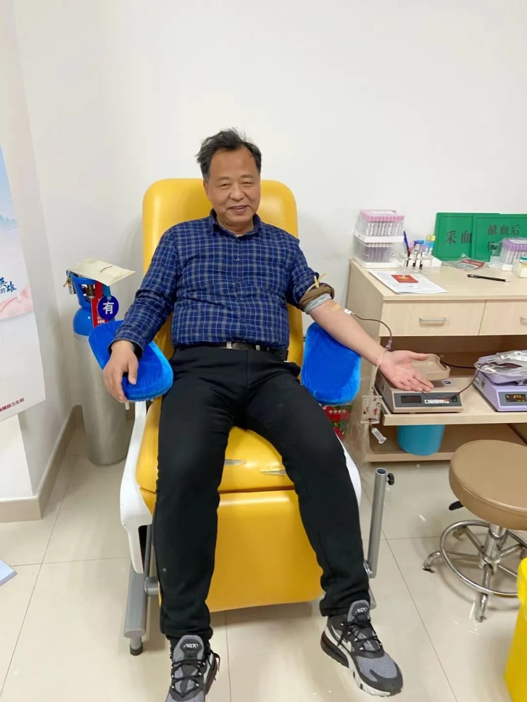 1998年11月26日,在江蘇省興化市人民醫(yī)院工作的蔡鵬洋聽到該市血站血液告急的消息,便趕去獻(xiàn)血,從此開啟了他無償獻(xiàn)血的愛心之路。 此后,蔡鵬洋每年都會參加無償獻(xiàn)血。無論在工作崗位上,還是在家中,只要血站血液告急或遇上患者急救需用血時(shí),他總是風(fēng)雨無阻,隨叫隨到。除了自己無償獻(xiàn)血,蔡鵬洋還經(jīng)常在各種場合向親友、同事普及推廣獻(xiàn)血知識,帶動大家一起獻(xiàn)血。在他的感召下,不少人加入到無償獻(xiàn)血的隊(duì)伍中。 “獻(xiàn)血是件快樂的事,因?yàn)檫@是在幫助他人。”蔡鵬洋說,為了獻(xiàn)出合格的血液,他十分注重鍛煉,每天騎車上下班,平時(shí)經(jīng)常跑步,在單位被稱為“運(yùn)動健將”。每次去獻(xiàn)血時(shí),他的血液指標(biāo)符合相關(guān)要求,自己就會感到幸福和自豪。 據(jù)統(tǒng)計(jì),從1998年11月至今,蔡鵬洋累計(jì)獻(xiàn)血9800毫升,相當(dāng)于兩個(gè)成人全身血量,已幫助49人脫離險(xiǎn)境。