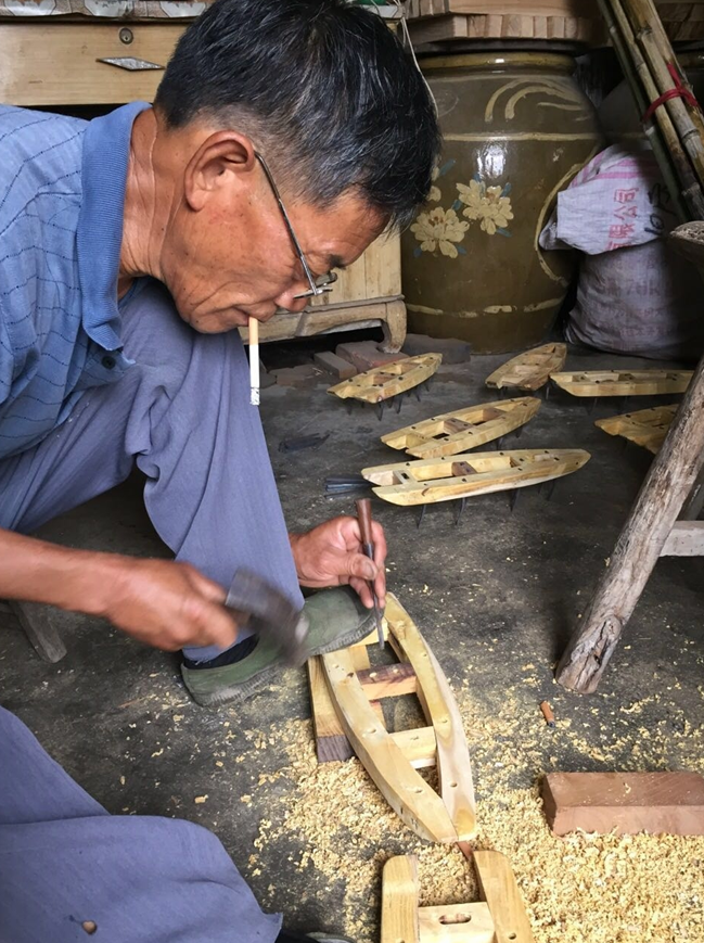 “‘東北三件寶,人參貂皮烏拉草’,這句話流傳久遠(yuǎn)。我們農(nóng)場也有三件寶:‘迷燈’、鐵耙、苕子草……”7月27日,在興化市戴南鎮(zhèn)顧北村天香農(nóng)場的162畝生態(tài)水稻田的田埂上,農(nóng)場負(fù)責(zé)人滕根林指著“布防”在稻田里的100盞白色圓柱形的新型蛾類誘捕器幽默地說。白色的罩子里面裝有引誘劑,是蟲子喜歡的味道,蟲子飛進(jìn)去就出不來了?梢杂行дT捕草地貪夜蛾、斜紋夜蛾、甜菜夜蛾、稻縱卷葉螟、大螟、二化螟等大部分蛾類、螟類害蟲。當(dāng)?shù)乩习傩辗Q之為“迷蟲燈”,這是他們的第一件“寶”。 布防在稻田里的新型蛾類誘捕器 曾多年在外打拼的滕根林2012年回到家鄉(xiāng),流轉(zhuǎn)土地162畝,建起了這個(gè)農(nóng)場,開始了他的生態(tài)種植之路。大膽嘗試全年種一季“綠肥”,種一季水稻的模式。 放眼稻田,綠浪翻滾。滕根林說,今年他種植的品種為南梗9173,因?yàn)槭怯玫能孀影l(fā)酵后作基肥,肥效釋放均勻,目前已是分蘗后期,生長速度明顯快于面上同期栽插的稻田。 農(nóng)婦在割苕子為拖拉機(jī)“開路” 滕根林說,苕子是一種一年生或越年生豆科草本植物,它是我們的第二件“寶”。在過去相當(dāng)長的時(shí)間內(nèi),戴南這一帶的農(nóng)民通常把它作為一種“綠肥”。即上年冬天播種,到來年5月初就用拖拉機(jī)帶的“犁刀”切碎,翻耕,放水,“漚”到6月初時(shí),滿田便冒出藍(lán)色的氣泡……這時(shí),便開始平田插秧。其肥效足以夠滿足一季水稻的需要,只要在水稻揚(yáng)花時(shí)施一些豆餅作抽穗肥就可以了,不需使用化肥農(nóng)藥。 老木匠在制作鐵耙 在合作社的倉庫里,看到了一個(gè)農(nóng)具——鐵耙。一根竹柄的頭子上,裝著一個(gè)木制的像“鞋子”一樣的玩意兒,上面釘著L型的鐵釘……人站在稻行間,將其來回拖動,可以起到除草、松根的作用,促進(jìn)水稻生長。滕根林說,目前農(nóng)場這樣的桑樹鐵耙100多把,這是我們的第三件“寶”。6月21日,農(nóng)場插秧結(jié)束。7月初我們就組織勞力集中“打耙”,然后再人工除草兩次,就沒有雜草了。因此根本不需要化學(xué)除草。由于生態(tài)環(huán)境好了,其他的病害也隨之消失。 農(nóng)婦們在稻田里打耙 生態(tài)種植也給滕根林帶來“豐收的煩惱”。由于不使用農(nóng)藥化肥,水稻產(chǎn)生了一種特殊的清香味。因此,大量的麻雀常常會飛來覓食。合作社只得置放大量的稻草人“嚇唬”它,還得雇人驅(qū)趕…… 滕根林說,第一年水稻單產(chǎn)才175公斤,有人笑話我:“吃錯(cuò)藥了!”經(jīng)過了10年的種植,到去年為止,單產(chǎn)稻谷已達(dá)500多公斤了。 物價(jià)部門核定的大米價(jià)格為每公斤24元,減去成本畝平純收入4000多元,是兩季種植糧食農(nóng)戶的近兩倍。問及滕根林的銷售渠道,這位走南闖北的硬漢說了四個(gè)字:“供不應(yīng)求。”他的理由是:“有好產(chǎn)品就有好銷路。” 滕根林的三件“生態(tài)道具”唱出了“綠色大戲”。他說:“沒有好的土壤就沒有好的食材,我們的賴以生存的土地已經(jīng)不能再承受太多的化肥和農(nóng)藥的侵蝕,我想做的是重建人與土地的關(guān)系,通過有機(jī)生態(tài)的生產(chǎn)方式,來為大家提供健康的食材!我會一直在路上!”