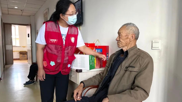 “這里環(huán)境好,飯菜也好吃,還有人聊天,蠻好的!”泰州市海陵區(qū)城西街道運(yùn)河社區(qū)黨總支書(shū)記、居委會(huì)主任金娟帶著禮物來(lái)到泰州市祥和社會(huì)福利院看望住在這里的社區(qū)居民老陳(化名)。