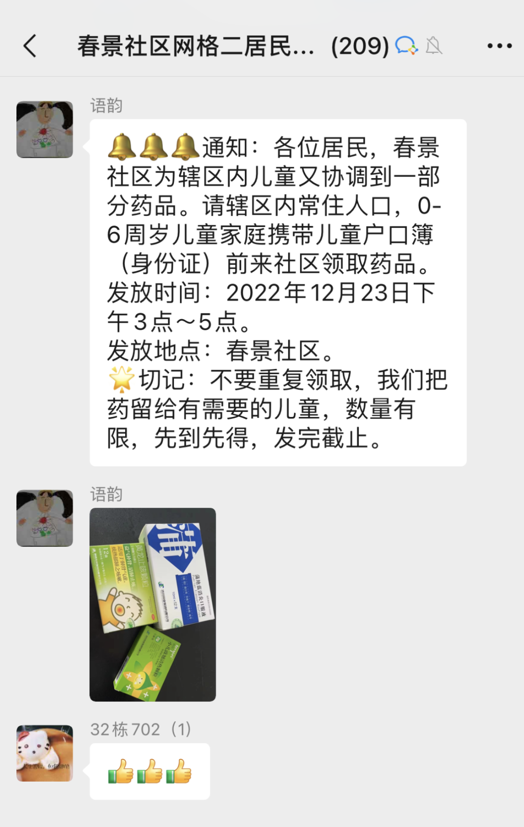 “各位居民,社區(qū)擬為轄區(qū)內(nèi)6周歲以下常住兒童發(fā)放兒童藥物一份!居民憑本轄區(qū)戶籍證明帶好幼兒的戶口簿前來領(lǐng)取……”泰州市海陵區(qū)不少居民都在社區(qū)群里看到類似的消息,這讓很多為嬰幼兒藥品犯愁的家長心生暖意。