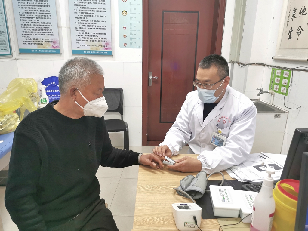 “脈氧儀操作方便,只要夾在手指上幾秒就可顯示結(jié)果,有利于幫助重點人群及時監(jiān)測身體狀況,減少重癥發(fā)展,及時發(fā)現(xiàn)病情、判斷病情、精準(zhǔn)分類處置。”江澄苑社區(qū)衛(wèi)生服務(wù)中心全科醫(yī)生姜永紅告訴記者,大多數(shù)老年人家中可能沒有備脈氧儀,所以對這方面的檢測需求比較高,老人們要是覺得胸悶、不舒服,想嘔吐,都可以過來測一下。