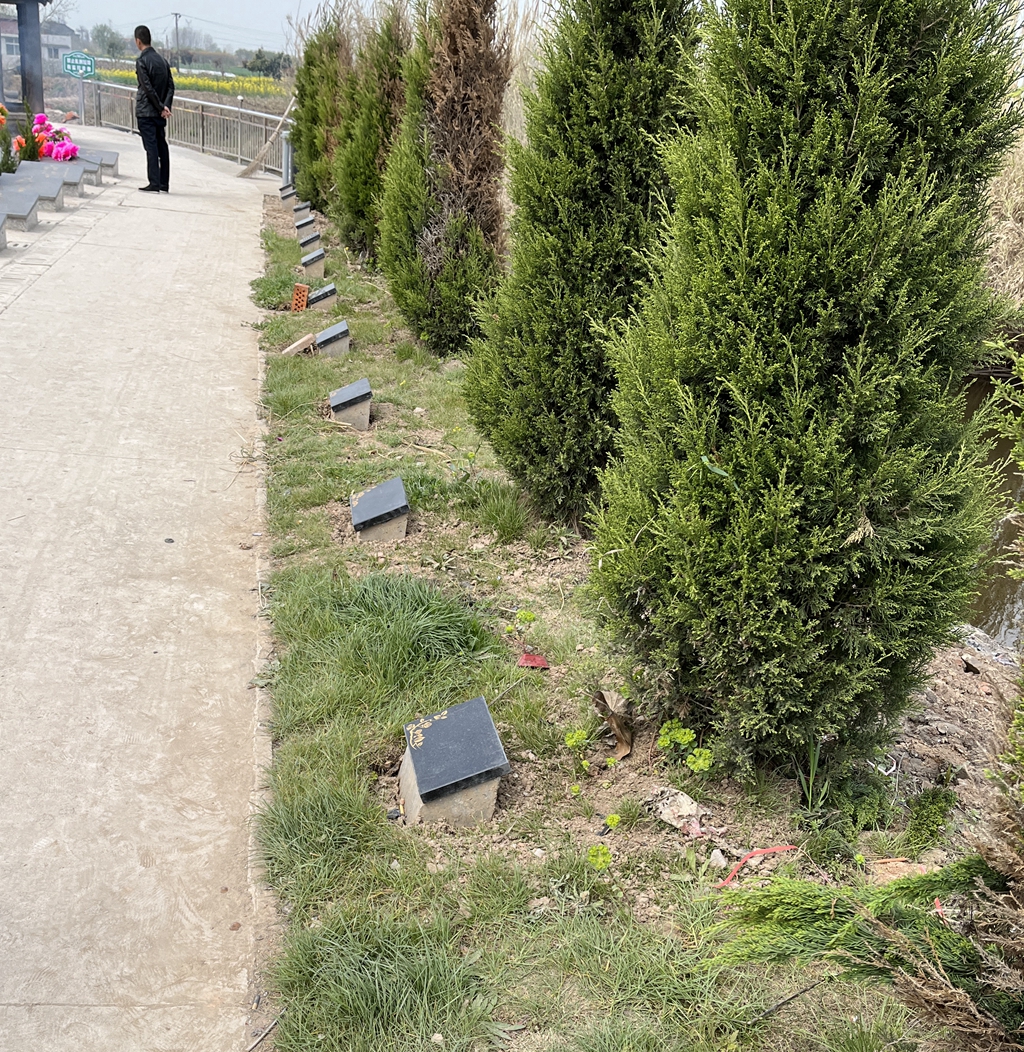 △圖為馬橋鎮(zhèn)仁安公墓樹葬區(qū)一角。 “近年來,靖江市全面推行節(jié)地生態(tài)安葬,新建公墓都是小型墓穴、使用臥式墓碑。靖江市還推行建設骨灰堂、壁葬區(qū)等。”殯葬管理工作負責人宦正洪介紹,靖江市也在逐步倡導樹葬、花壇葬、草坪葬、江葬等生態(tài)葬,并積極落實相關減免和獎補政策,促使節(jié)地生態(tài)葬被更多市民所接受。馬橋鎮(zhèn)在泰安公墓建成庭院風格的花壇葬、樹葬區(qū)后,今年又在仁安公墓建成樹葬區(qū)。新橋鎮(zhèn)也建成了樹葬區(qū)和草坪葬區(qū)。 據(jù)悉,靖江市相關政策明確,對采取江葬、可降解骨灰盒葬或骨灰立體式存放等節(jié)地生態(tài)葬法處置骨灰的本市戶籍居民給予相關費用減免和獎補。對選擇江葬的戶籍居民,除免除江葬直接費用外,再給予每例1000元的獎勵;對選擇可降解骨灰盒葬的戶籍居民,除免除安葬費外,再給予每例1000元的獎勵;對十類特殊困難群體新生骨灰,免除骨灰格位使用費。 清明祭掃秩序井然 公墓外,車輛停放有專人或指示牌引導;公墓內(nèi),綠植修剪到位,工作人員、志愿者現(xiàn)場倡導文明祭掃……連日來,靖江市清明祭掃秩序井然。各鎮(zhèn)(街道、辦事處)通過微信公眾號、村(社區(qū))微信群、廣播喇叭、懸掛橫幅、舉辦講座、發(fā)放宣傳資料等多種方式,引導群眾文明祭掃、錯峰祭掃,并全力做好清明祭掃服務保障工作。