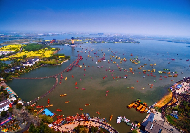 “從過去的民間組織到政府主導再到社會參與,會船也隨著時空的穿越,變成了全社會共同參與的盛會。溱潼會船己演變成一種水鄉(xiāng)兒女奮進新征程、建功新時代的美麗畫卷。”曾任姜堰區(qū)溱潼鎮(zhèn)黨委書記的肖樂平深有體會地說。 從過去會船的“窄”變成了水上文化的“寬”,姜堰人把船會越辦越震撼。時間跨度從原先的幾天會船變成了一個多月,天天有會船,場場有精彩;從過去的單項會船變成了“視覺文化盛宴”,各種文藝活動精彩紛呈,水上各種極限運動應有盡有,岸邊文娛活動,讓游客大呼過癮;從過去的幾千人變成了十多萬人,整個溱湖變成了歡樂的海洋。 今年中國泰州姜堰溱潼會船節(jié)更值得期盼,除了規(guī)定動作外,你還可共品到壯懷激烈的“滿姜紅”,暢游最有家國情懷的姜堰:共賞到水波蕩漾的“滿姜紅”,暢游最有詩意的姜堰;共享到千年文脈的“滿姜紅”,暢游最有文藝范的姜堰;共赴生活紅火的“滿姜紅”,暢游最有煙火氣的姜堰。與歷史重逢,與文化對話,更有數(shù)不盡的盲盒,享不盡的驚喜。 “會船會水”全業(yè)融合,水上狂歡 激活會船非遺活態(tài)傳承的生命力,讓會船結(jié)出有滋有味的幸福生活新果實。近年來,姜堰區(qū)在傳統(tǒng)民俗和現(xiàn)代生活中找到了連接點和共鳴處,將保護傳承與合理開發(fā)相結(jié)合。 今年會船節(jié),姜堰區(qū)精心策劃4大類、18項系列活動,讓游客大飽眼福。打造全域旅游新亮點,展示鎮(zhèn)村有驚喜的全景畫卷,會船節(jié)期間,“堰上花開”鄉(xiāng)村旅游節(jié)重啟,古鎮(zhèn)溱潼尋覓古韻鄉(xiāng)愁、千垎周莊品味田園詩畫、潼享田園盡享天倫之樂,讓游客邂逅“十里不同風、百里不同俗”的水鄉(xiāng)風情,以會船拉動旅游產(chǎn)業(yè)。 打造全業(yè)融合新境界。會船節(jié)期間,文化、賽事、經(jīng)貿(mào)為一體的饕餮盛宴如約而至,賞析高二適書法,感悟“當代草圣”揮毫潑墨的酣暢淋漓;溱湖半程馬拉松,體驗速度與汗水的對決;群眾文化藝術節(jié),感受傳統(tǒng)藝術的無窮魅力;聽船娘悠揚清脆的搖櫓小調(diào);看“生態(tài)環(huán)境全球500佳”河橫村;賞十里濱水長廊;棲身小楊人家網(wǎng)紅民宿;游院士故居;探訪單塘河新石器遺址;追尋西周江淮第一城的輝煌歲月;打卡溱潼磚瓦博物館;對話文人大師;游覓蘇中第一個紅色蘇維埃政權誕生地;經(jīng)貿(mào)洽談會,在溱湖等你,真正實現(xiàn)會船搭臺,經(jīng)貿(mào)唱戲。