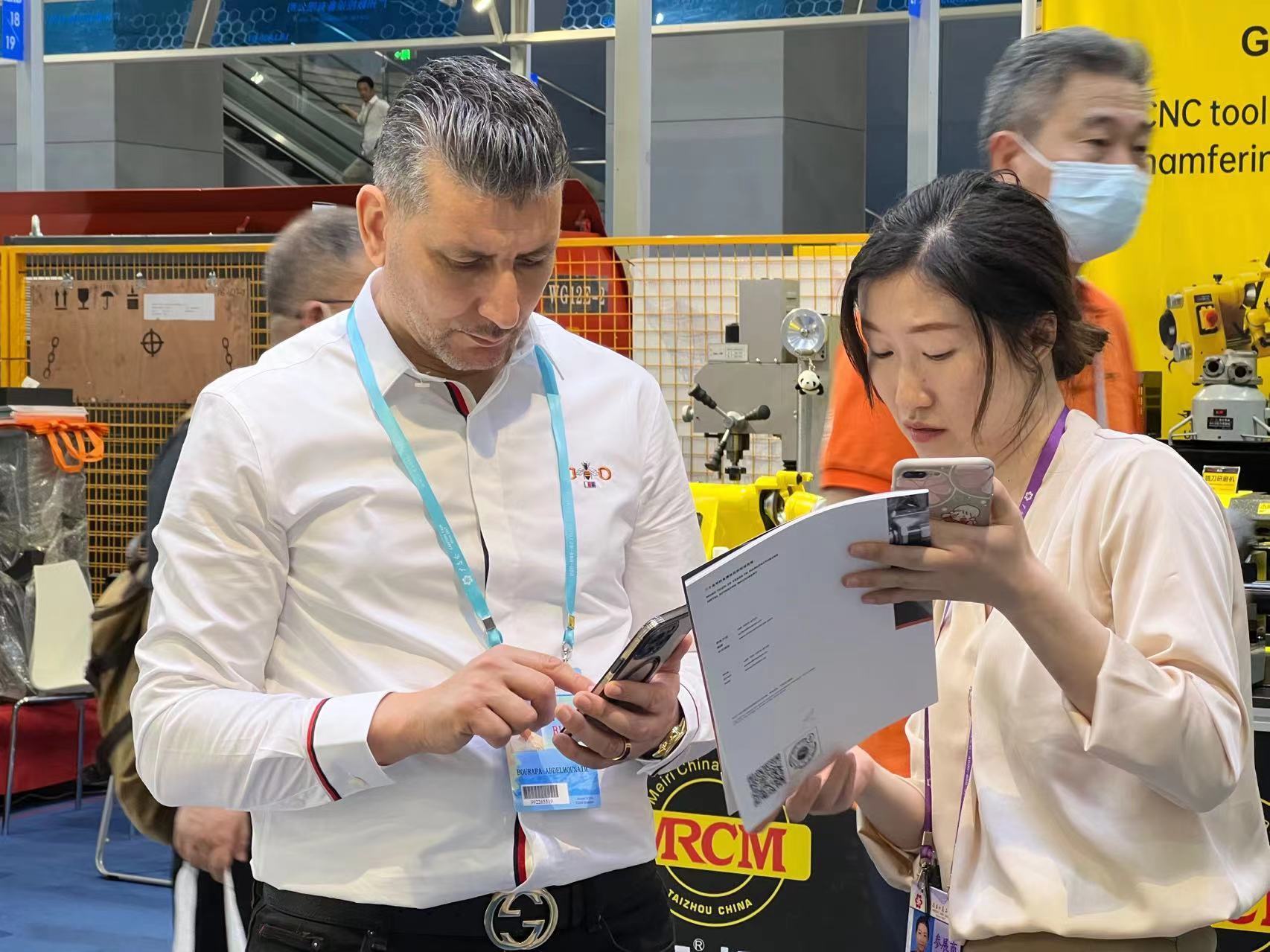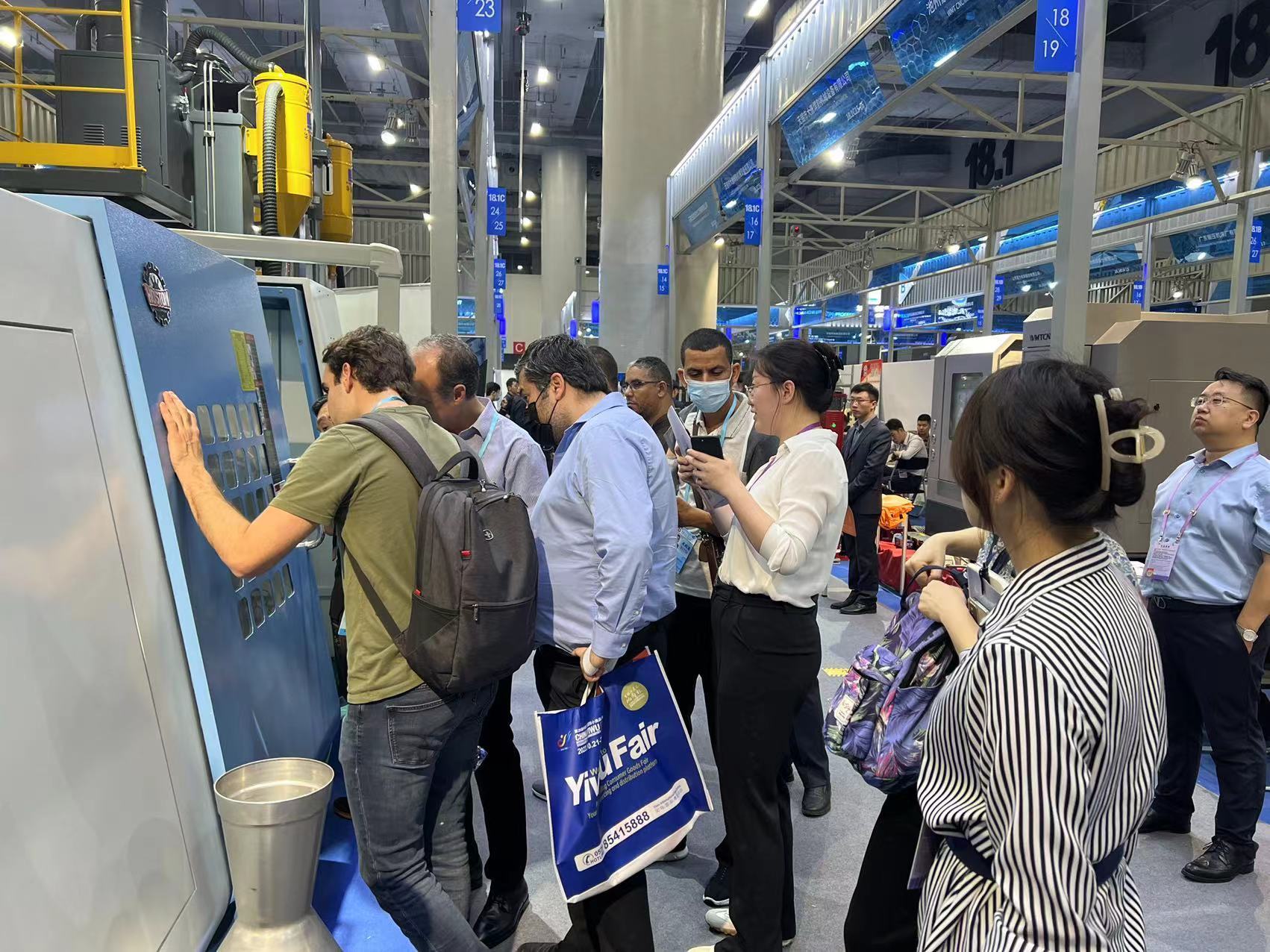 江蘇豪士敦機(jī)械設(shè)備有限公司在本次展會(huì)上收獲頗豐,展出的數(shù)控金屬旋壓機(jī)、高效斜床身刀塔車(chē)床等產(chǎn)品受到客商歡迎,意向成交額超1000萬(wàn)元。會(huì)展開(kāi)幕第一天,就有20多位國(guó)外客商問(wèn)詢,企業(yè)通過(guò)短視頻社交平臺(tái)同步宣傳,線上直播間人氣持續(xù)火爆,吸引了眾多采購(gòu)商預(yù)約洽談。