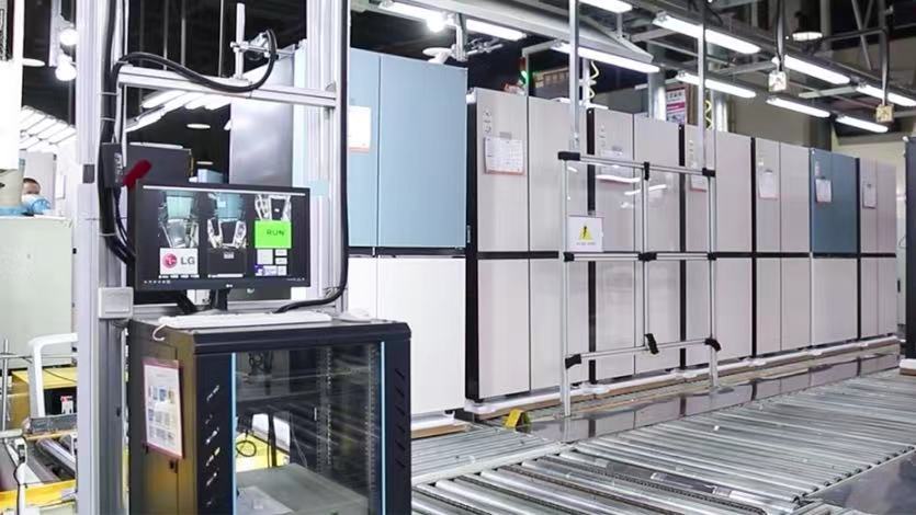 泰州樂金電子冷機有限公司是LG全球最大的冰箱生產(chǎn)基地,也是海陵區(qū)一家單體超百億元的企業(yè)。眼下,樂金電子REF四號生產(chǎn)線,400多名工人在各自的區(qū)域忙碌。整條生產(chǎn)線上,冰箱的預(yù)裝、發(fā)泡、組裝、質(zhì)檢、包裝等工作都在有條不紊地進行。據(jù)了解,這條生產(chǎn)線的產(chǎn)品是企業(yè)新研發(fā)的VS6雙開門冰箱,擁有球形制冰機,保溫效果更顯著,外觀設(shè)計也更符合用戶的審美標(biāo)準(zhǔn)。作為省級智能制造示范車間,車間采用了多種智能化設(shè)備,提升了生產(chǎn)效率和管理水平。據(jù)車間經(jīng)理陳飛介紹:“我們這條生產(chǎn)線平均日產(chǎn)2000-2200臺冰箱,車間的智能化設(shè)備大約有95個,聯(lián)網(wǎng)率達到98%以上,接下來我們車間的智能化率將會持續(xù)提高。”