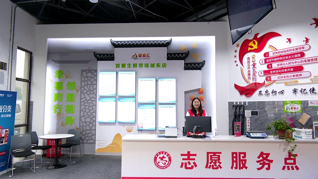 在城東智慧生鮮市場,大門入口處不僅設(shè)立了志愿服務(wù)點,向市民提供公平秤、急救箱、雨傘、開水等服務(wù),還設(shè)立了顧客休息區(qū)以及泰興美食非遺展示區(qū)。誠信經(jīng)營、講文明樹新風(fēng)等社會公益宣傳氛圍濃厚。市場采用超市布局模式,物品擺放整齊,環(huán)境干凈整潔。“落實保安人員加強菜場內(nèi)外的巡查,禁止菜場內(nèi)吸煙以及寵物狗入內(nèi),同時規(guī)范周邊車輛停放管理,為市民營造一個良好的購物環(huán)境。”市場管理員郭國良介紹。