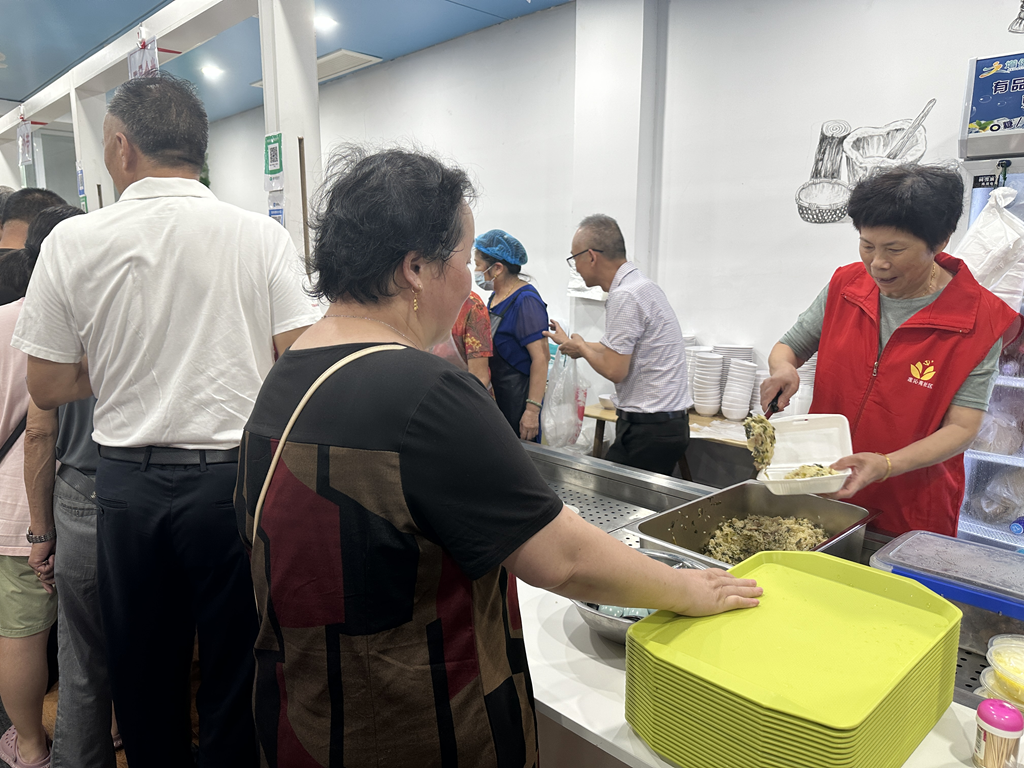 聞?dòng)忻紫悖^有菜色。踏進(jìn)江蘇靖江澄靖園區(qū)辦事處蓮沁苑社區(qū)食堂,紅燒大排、麻婆豆腐、雪菜毛豆、紫菜蛋湯等菜品整齊擺放,香氣撲鼻而來(lái)。不少老年居民三五圍坐,吃得津津有味。自今年7月食堂開張以來(lái),社區(qū)老年居民每天都能吃上營(yíng)養(yǎng)美味的餐食。