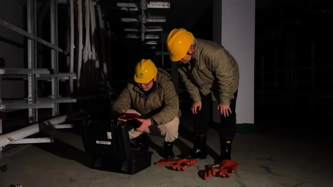 晚上7點,和往常一樣,城市的夜空被絢爛的燈光照亮。此刻,國網興化供電公司變電電纜運維班的季恒杰和儲浩宇也開始了夜間特巡。他們的任務是對昭陽鎮(zhèn)戴昭線上南陽110千伏變電站的地下電纜隧道進行巡查。與城市街道燈火通明相比,隧道里漆黑一片,只能依靠儀器微弱的燈光照明。 儲浩宇介紹說:“我們主要負責開發(fā)區(qū)西北片、吾悅廣場以及吾悅和府等上萬戶用戶的電力供應。由于此時正處于用電高峰時段,為了確保正常的電力供應,我們現(xiàn)在對南陽變進行特殊巡視,及時發(fā)現(xiàn)問題并解決問題。”