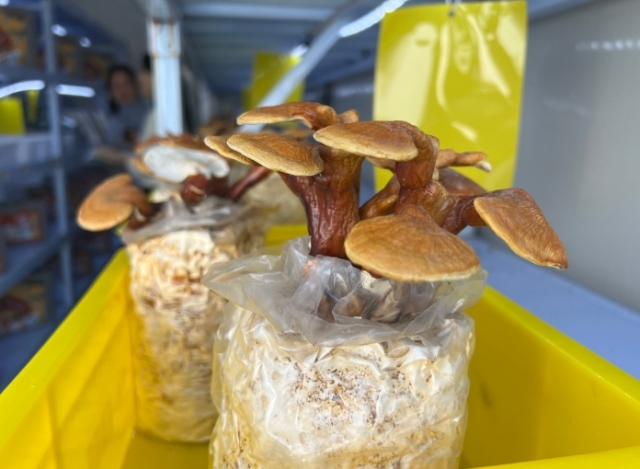 “這是正在生長中的金耳,一般0℃~4℃的溫度適合它生長,它的膠原蛋白營養(yǎng)豐富。在該項目云種植·數(shù)智菌菇艙內(nèi)可以看到金耳、羊肚菌、猴頭菇等數(shù)十種菌菇的生長狀態(tài)。方艙內(nèi)可以模仿各種菌菇在自然界中生長所需的溫度、濕度,展現(xiàn)菌菇的生長過程。”“菇菇部落”工作人員顧曉燕介紹道。 為了做強(qiáng)“菇菇”產(chǎn)業(yè)鏈,今年小楊社區(qū)還引進(jìn)新的農(nóng)業(yè)項目——赤松茸。“整個項目占地14畝,叫做生態(tài)循環(huán)農(nóng)業(yè)項目,分為棚內(nèi)種植和室外種植。種植模式也有創(chuàng)新,分為純稻草、稻草加菌渣以及稻草加玉米芯等基料種植模式,希望以此觀察赤松茸的產(chǎn)量高低如何?”談及赤松茸的培育方式,王政娓娓道來,“引進(jìn)赤松茸項目是為了不斷做強(qiáng)菌菇產(chǎn)業(yè)鏈、豐富菌菇品種,以此擦亮社區(qū)菌菇品牌。”