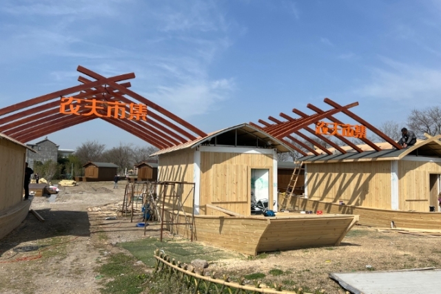 裁剪、綁扎、釘合……徑直走進(jìn)該社區(qū)“小楊人家”民宿項目,記者見工人師傅正在緊張施工,現(xiàn)場一派繁忙景象,一個個形似木船造型的集裝箱整齊排列。 “這幾條類似木船造型的集裝箱是用來干啥的?”帶著這樣的疑問,記者向該社區(qū)黨委書記王政詢問道。“這里原來是一塊閑置場所,我們準(zhǔn)備將它打造成地標(biāo)性的特色消費(fèi)集聚地——農(nóng)夫市集。我們邀請專業(yè)人士結(jié)合里下河水鄉(xiāng)地域文化,將原有的集裝箱設(shè)計成木船造型,以此全面全區(qū)的農(nóng)副特產(chǎn)。”王政介紹說,目前姜堰區(qū)已經(jīng)創(chuàng)成省級特色田園鄉(xiāng)村5個、正在創(chuàng)建省級特色田園鄉(xiāng)村3個,于是他們設(shè)計了8條“木船”,每條船將代表一個村,全面展示該村的風(fēng)土人情、特色文化以及產(chǎn)業(yè),為“小楊人家”的鄉(xiāng)村旅游項目再添亮色。