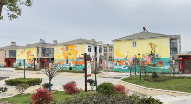 泰州學(xué)院美術(shù)學(xué)院教師殷衛(wèi)霞介紹說(shuō),本次創(chuàng)作主要向遠(yuǎn)方來(lái)客展示姜堰,創(chuàng)作主題圍繞人文景觀和姜堰特色,我們師生團(tuán)隊(duì)一起完成。時(shí)間緊,任務(wù)重,20多名學(xué)生加班加點(diǎn),從設(shè)計(jì)到繪畫,希望通過(guò)墻繪為姜堰旅游產(chǎn)業(yè)添磚加瓦,為姜堰城市美化做一份力所能及的貢獻(xiàn)。 小楊人家作為溱湖灣特色田園鄉(xiāng)村示范區(qū)的重要陣地,泰州學(xué)院美術(shù)學(xué)院的學(xué)生將村莊房屋老舊的白墻變成一張張生動(dòng)的畫布,在色彩斑斕、創(chuàng)意十足的墻繪里融匯櫻花、觀光休閑、農(nóng)耕文化等元素,結(jié)合小楊社區(qū)打造特色田園鄉(xiāng)村的亮點(diǎn)做法,打造小楊人家“網(wǎng)紅墻”,實(shí)現(xiàn)“村莊顏值”“精神文明”“鄉(xiāng)村旅游”三提升。