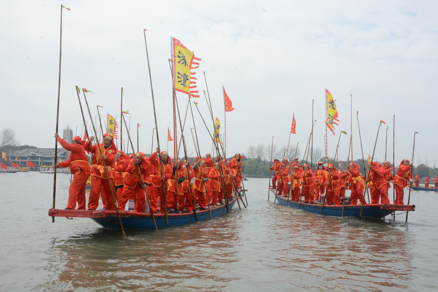 “溱潼會(huì)船”非遺文化瑰寶是民俗的“活化石”,會(huì)船文化既是重要的旅游資源,也賦予其更深厚的文化內(nèi)涵,彰顯了非遺的生機(jī)和城市的活力。近年來,泰州市姜堰區(qū)把非遺與旅游深度融合,古老珍貴非遺會(huì)船遇上美麗風(fēng)景,碰撞出“力”與“美”的時(shí)代文化火花,讓傳統(tǒng)民俗會(huì)船文化與活力城市來了一次完美的“直接對(duì)話”。 會(huì)船表演藝術(shù)與生態(tài)自然美景對(duì)話,讓一座城“嗨”起來 溱潼會(huì)船有上千年的歷史。據(jù)資料記載,南宋時(shí)期,岳飛率領(lǐng)的岳家軍與金兵激戰(zhàn)溱湖后,陣亡不少將士,從此每年清明,水鄉(xiāng)兒女都要來這里祭奠英烈,久而久之逐漸形成撐篙會(huì)船的清明習(xí)俗。 2008年,“溱潼會(huì)船”被列入國家級(jí)非物質(zhì)文化遺產(chǎn)名錄,2009年,被上海大世界吉尼斯總部認(rèn)定為“大世界吉尼斯之最——規(guī)模最大的船會(huì)活動(dòng)”,堪稱世界“水上第一廟會(huì)”。