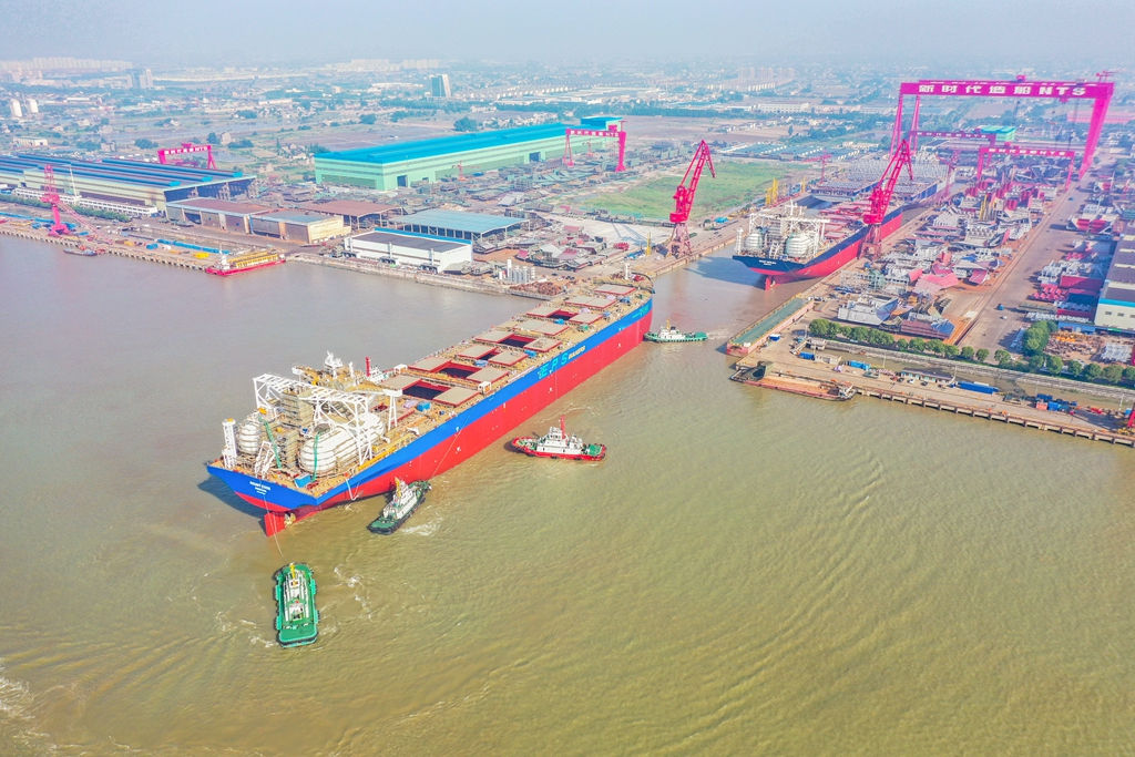 全國造船看江蘇,江蘇造船看靖江。作為全國最大的民營造船基地,國家級(jí)船舶出口基地,以新時(shí)代、新?lián)P子造船為代表的靖江船舶企業(yè)2023年新接訂單增長71%,手持訂單、造船完工量分別增長29.9%和12.6%,船舶產(chǎn)業(yè)規(guī)上總產(chǎn)值增長39.9%,在全球造船業(yè)中占據(jù)領(lǐng)先地位。 新時(shí)代造船所在的靖江經(jīng)濟(jì)技術(shù)開發(fā)區(qū),解放前,這里洼田密布、河道縱橫,渡江大軍曾在此集結(jié),六助港、羅家港等,都是重要的渡江點(diǎn)。今年100歲的老船工陳子根,當(dāng)年便是從羅家港出發(fā),運(yùn)送十兵團(tuán)第29軍的戰(zhàn)士過江。 時(shí)過境遷,如今這片土地港口碼頭吊機(jī)林立、現(xiàn)代化廠房鱗次櫛比、生產(chǎn)機(jī)器轟鳴不絕,已經(jīng)成為靖江經(jīng)濟(jì)發(fā)展的主陣地、主戰(zhàn)場(chǎng)、主引擎,坐擁國家級(jí)經(jīng)濟(jì)技術(shù)開發(fā)區(qū)、國家一類開放口岸、保稅物流中心(B型)三塊“金字招牌”。