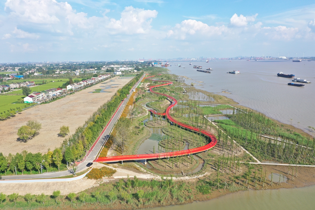 4月1日下午,一艘裝載著4.8萬噸煤炭的海輪靠泊深國際港口江蘇靖江港碼頭,成為該碼頭自去年12月開港運(yùn)營以來,靠泊的第19艘海輪。深國際智慧物流中心項(xiàng)目致力于綠色化、智能化港口建設(shè),全封閉干煤棚的運(yùn)用開創(chuàng)了長江岸線港口物流企業(yè)的先河。 靖江將以深國際智慧物流港區(qū)為示范引領(lǐng),推動(dòng)傳統(tǒng)碼頭往數(shù)智化方向轉(zhuǎn)型,打造長三角一流的智慧港口、綠色港口。同時(shí),主動(dòng)對(duì)接上海港、寧波港、太倉港,打造大宗商品集散交易、江海聯(lián)運(yùn)國際物流等樞紐中心,真正將大進(jìn)大出的港口“流量”轉(zhuǎn)變成為我所用的經(jīng)濟(jì)“增量”。 渡江戰(zhàn)役期間,駐扎在新橋鎮(zhèn)的三野23軍69師207團(tuán)第一、第三先鋒突擊營1000余人,憑借靖江人民創(chuàng)造的“半帆待命”戰(zhàn)術(shù),僅用16分鐘就渡過了長江,被譽(yù)為“渡江先鋒突擊團(tuán)”。 “半帆待命”彰顯了靖江人敢為人先、破舊立新的勇氣。正是這種勇氣的傳承,新橋鎮(zhèn)漁憶濕地生態(tài)公園應(yīng)運(yùn)而生。原先,這里是雜亂不堪的碼頭、工廠和魚塘。2018年開始,靖江啟動(dòng)退漁還濕工程,并對(duì)江灘實(shí)施生態(tài)修復(fù)。如今,這里已經(jīng)成為靖江市民休閑觀光的好去處。