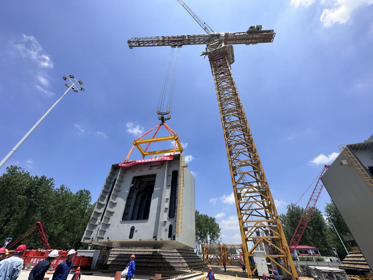 張靖皋長(zhǎng)江大橋由多橋段組成,其中以主跨2300米的南航道橋?yàn)橹鳂,也是世界上跨度最大的在建橋梁,擁有跨度、索塔高度、錨碇體積等6項(xiàng)世界第一。張靖皋大橋南航道橋北主塔位于靖江市馬洲島。高350米的北主塔為門字形結(jié)構(gòu),是世界最高懸索橋索塔,主塔采用世界首創(chuàng)鋼箱—鋼管約束混凝土組合索塔設(shè)計(jì),每個(gè)塔柱30個(gè)節(jié)段,將像搭積木式的層層向上疊加安裝。 “這臺(tái)鋼鐵巨臂就是來(lái)給北主塔搭積木的。”張靖皋長(zhǎng)江大橋項(xiàng)目工程部部長(zhǎng)田智源介紹,通過(guò)驗(yàn)收的XGT15000-600S主塔吊,是目前全球最大的塔式起重機(jī)。這臺(tái)“大國(guó)重器”于2021年11月27日發(fā)布,起重機(jī)最大起升高度400米,最大起重量600噸,曾先后經(jīng)過(guò)常泰長(zhǎng)江大橋、巢馬城際鐵路馬鞍山公鐵兩用長(zhǎng)江大橋的施工建設(shè)驗(yàn)證,在300米以上高空完成過(guò)最大吊重超過(guò)500噸的鋼塔吊裝作業(yè),滿足了橋梁建設(shè)模塊大型化發(fā)展的新需求。張靖皋長(zhǎng)江大橋南航道橋北主塔節(jié)段的搭建重任,也將交由這臺(tái)“鋼鐵巨臂”吊裝完成。