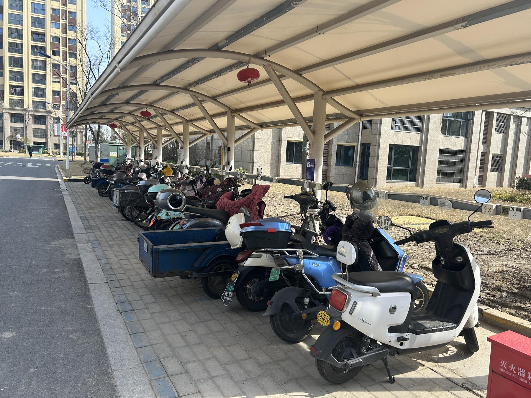 伴隨著城市更新的步伐不斷推進(jìn),舊房改造工程、美麗家園建設(shè)、人居環(huán)境整治等持續(xù)發(fā)力,靖江市居民的居住品質(zhì)一步步蝶變升級(jí)。美麗整潔的家園環(huán)境不僅僅依靠基礎(chǔ)硬件配套的升級(jí)優(yōu)化,更有賴于社區(qū)居民積極踐行文明風(fēng)尚。 化解居民電動(dòng)車充電難題 當(dāng)前,讓電動(dòng)車安全充電是各個(gè)小區(qū)普遍關(guān)注的重點(diǎn)工作。在靖江市城北園區(qū)永昌花苑小區(qū),地面充電棚的設(shè)計(jì)得到居民們一致好評(píng)。小區(qū)內(nèi),每隔幾個(gè)樓棟就有一個(gè)約十米長(zhǎng)的充電棚,棚內(nèi)有四五十個(gè)充電插口,居民可以掃碼、投幣、辦充值卡進(jìn)行充電。
