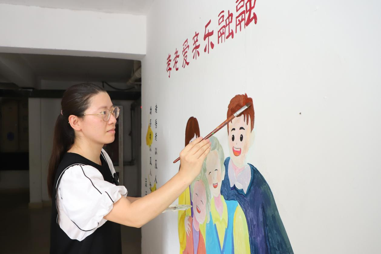 △圖為城南辦事處睦鄰點(diǎn)的共享圖書角。 去年下半年,城南辦事處把睦鄰點(diǎn)化身為“圖書角”,在各村(社區(qū))睦鄰點(diǎn)打造社區(qū)“共享圖書角”,選定紅色書籍、法律讀本、兒童讀物、生活休閑類、科普教育類等書籍報(bào)刊,滿足居民的閱讀需求,讓居民在家門口就能以書會(huì)友,共享閱讀之樂,讓書香飄得更遠(yuǎn)。各村(社區(qū))還積極開展“親子讀書會(huì)”“共讀一本書”等閱讀活動(dòng),營(yíng)造良好的閱讀氛圍。 營(yíng)造“開門見文明”的樓道 樓棟作為小區(qū)管理的基石,是鄰里情感交流的單元平臺(tái)。在不少小區(qū),文明、孝老、睦鄰等主題墻繪逐步取代了昔日的“臟亂差”和廣告“牛皮癬”,整潔靚麗的“文明墻”讓和諧新風(fēng)撲面而來,樓道彩繪不僅美化了環(huán)境,也提升了樓宇的文明程度。