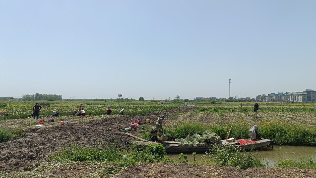 日前,走進(jìn)興化“垛上田”家庭農(nóng)場,映入眼簾的是一片忙碌的景象,有的忙著起蔥,有的忙著捆蔥,有的忙著挑蔥……
