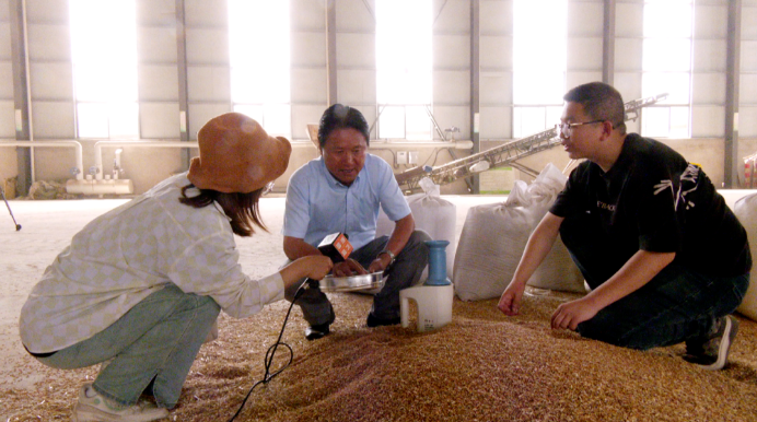 在泰興市虹橋鎮(zhèn)虹潤家庭農(nóng)場,業(yè)主郭桂軍正在與鎮(zhèn)上的農(nóng)技人員共同查看新麥烘干情況。郭桂軍所經(jīng)營的虹潤家庭農(nóng)場小麥面積3500多畝,今年預(yù)計畝產(chǎn)900斤,總產(chǎn)量可達1800噸左右,每天可以烘干出成品小麥350噸到360噸。隨著今夏小麥?zhǔn)袌龌嘏,整體呈現(xiàn)穩(wěn)中有升的趨勢,郭桂軍把握時機,提前與國庫、地方庫達成購銷意向,因經(jīng)銷的小麥品質(zhì)好、儲量大,很受市場歡迎,每斤價格在1.3元左右。