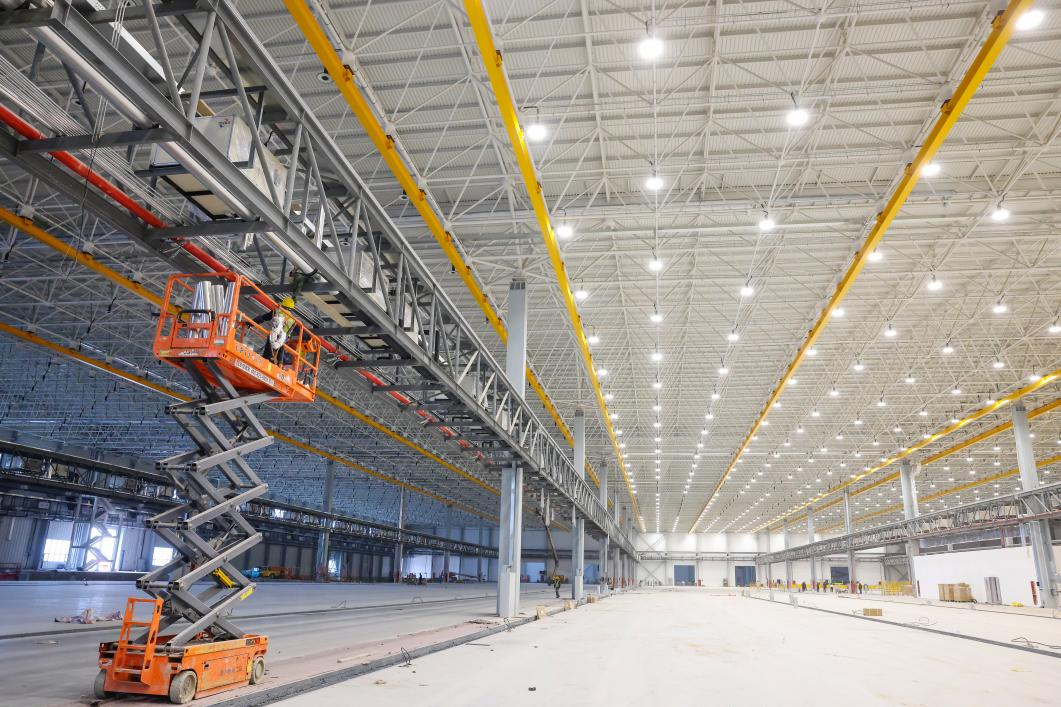 △圖為深國際靖江港碼頭高效作業(yè) 企業(yè)開創(chuàng)長江岸線港口物流企業(yè)先河,建設全封閉干煤棚封閉式料倉,配有封閉式皮帶廊道運輸系統(tǒng)以及裝卸船機、轉(zhuǎn)運站密閉罩、防塵簾等“二次防護”裝置,實現(xiàn)物料從卸貨、輸送、儲存、裝貨的水平輸送全流程、全封閉式管理。在封閉式料倉屋頂,配套了目前全省港口碼頭總?cè)萘孔畲、發(fā)電量最多的光伏電站,預計3個料倉可覆蓋8萬平方米的光伏發(fā)電系統(tǒng),年發(fā)電高達1300萬千瓦時,規(guī)模及發(fā)電量均處于全省港口領(lǐng)先水平。企業(yè)還全力推進水環(huán)境污染防治,配備船舶生活污水接收裝置及一體化生活污水處理裝置,積極推進“中水回用”,處理后的污水用于場內(nèi)抑塵和綠化澆灌,一系列舉措樹立起了港口標桿示范。 綠色發(fā)展是高質(zhì)量發(fā)展的底色,越來越多的企業(yè)在“上新”項目時,注重從“含綠量”的提升中謀求“含金量”的提升。江蘇亞星錨鏈股份有限公司作為一家船用鏈條全國市場占有率達70%的重工企業(yè),持續(xù)挖掘節(jié)能潛力,推進節(jié)能技術(shù)改造,從產(chǎn)品、工藝、設備、人員等方面推動節(jié)能降耗、降本增效工作,使能耗控制始終維持在行業(yè)較高水平。近年來,企業(yè)實行能源消耗定額管理制度,實施了調(diào)質(zhì)爐、鍛造加熱爐節(jié)能技改項目、節(jié)能型電機更換項目、分布式光伏項目等多項綠色低碳項目,年節(jié)能量近3000噸標準煤,企業(yè)的單位能耗穩(wěn)步下降,進一步健全綠色制造體系,助力一條條船舶錨鏈走向世界,成長為高技術(shù)含量、產(chǎn)品高附加值的“世界錨鏈大王”。 新建綠色建筑群走“生態(tài)范兒” 走進總投資52億元的凱飛民用航空結(jié)構(gòu)件生產(chǎn)制造項目建設現(xiàn)場,建筑工人們正在進行室內(nèi)設施安裝,整個項目內(nèi)部裝修全部采用環(huán)保節(jié)能材料,使用的設施設備均是節(jié)能型,包括節(jié)能燈具、節(jié)能空調(diào)等,最終實現(xiàn)低碳減排的目的。