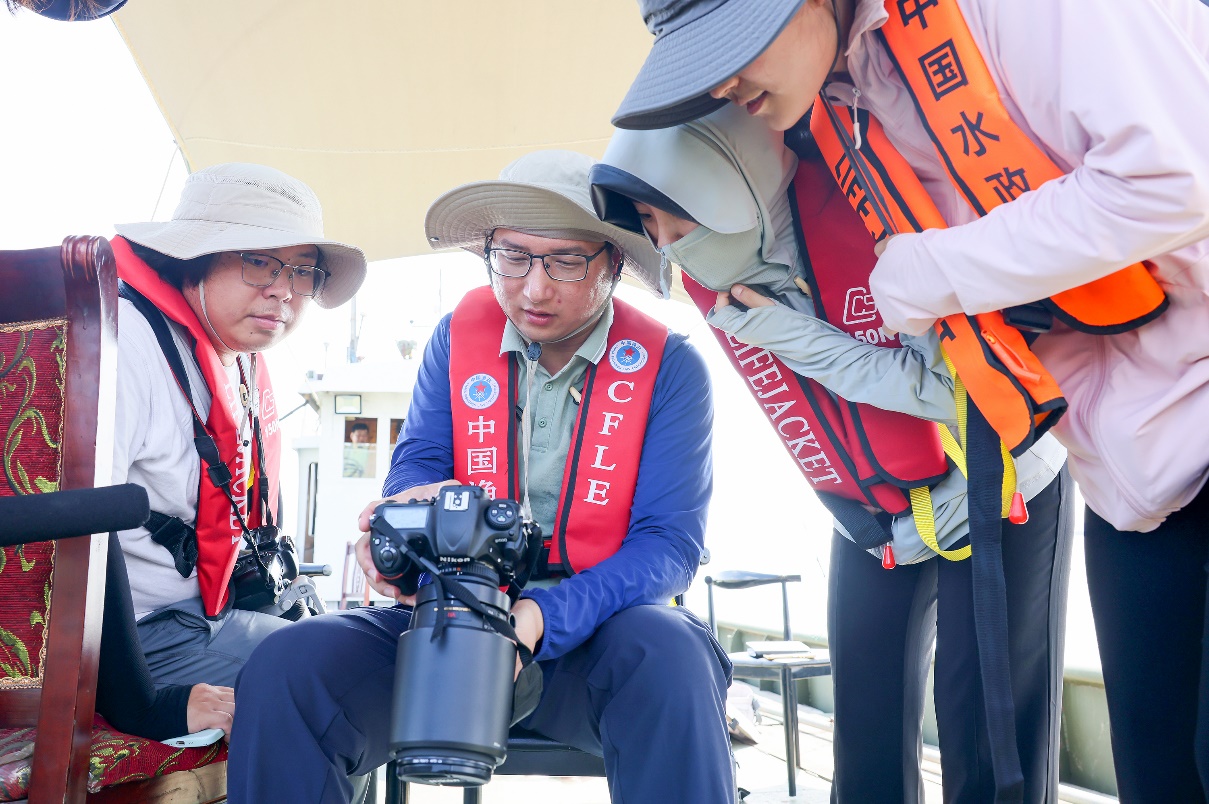 △調(diào)查隊成員查看拍攝的江豚畫面 據(jù)悉,長江靖江段穩(wěn)定棲息著2個長江江豚族群,種群數(shù)量約40頭。一個族群主要分布在江陰大橋和牧城公園江段,另一個族群主要分布在新橋夾港江段。長江江豚棲息水域所在岸線,全部位于靖江不開發(fā)區(qū)的自然岸線范圍內(nèi)。調(diào)查隊還觀測到3個長江江豚識別個體,并給它們編號“TJ-1、TJ-2、TJ-3”,簡稱靖江1號、靖江2號、靖江3號。 |