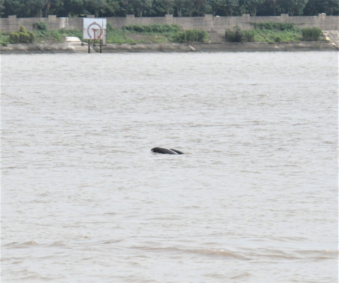 長江靖江段第三次發(fā)現(xiàn)“母子豚”戲水