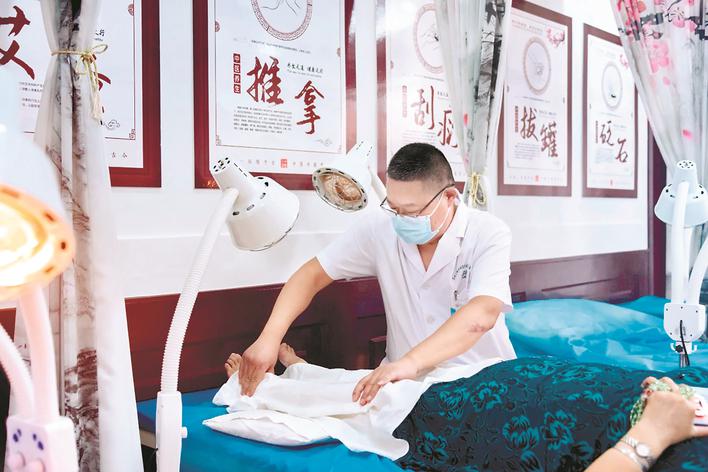 針灸、推拿、穴位貼敷……海陵區(qū)城西街道社區(qū)衛(wèi)生服務中心國醫(yī)館是省五級中醫(yī)館。步入館內(nèi),淡淡藥香,浸潤在角角落落。數(shù)百平方米的開闊空間,開設了中醫(yī)外科、中醫(yī)皮膚科、中醫(yī)針灸等服務專區(qū),形成了一批優(yōu)勢病種的臨床治療方案和標志性技術(shù)項目。類似省五級中醫(yī)館,泰州全市已有16家,省五級中醫(yī)館可規(guī)范開展10類20多項中醫(yī)藥適宜技術(shù)服務,配備超300種中藥飲片及多種中醫(yī)治療設備。 由此,簡、便、驗、廉的中醫(yī)藥服務,在越來越多的市民家門口生根、發(fā)芽。據(jù)悉,近年來,泰州市以創(chuàng)建全國基層中醫(yī)藥工作示范區(qū)為契機,健全基層中醫(yī)藥服務體系,縣辦中醫(yī)醫(yī)療機構(gòu)(醫(yī)院、門診部、診所)覆蓋率100%。所有基層衛(wèi)生醫(yī)療機構(gòu)都建有標準化的中醫(yī)館和中醫(yī)閣,20%建制鎮(zhèn)衛(wèi)生院(社區(qū)衛(wèi)生服務中心)中醫(yī)館服務能力達到五級標準。