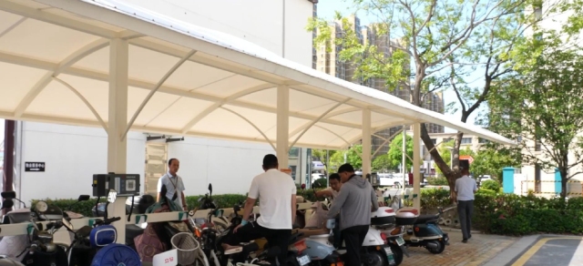 為了讓市民的電動車“有地停、放心充”,今年,泰州市姜堰區(qū)在城區(qū)62個高層小區(qū)投建電動自行車充電棚,目前該項目包含的327個車棚、11627個充電點位已經(jīng)全部建成并投入使用,緩解了居民停車難、充電難等問題。