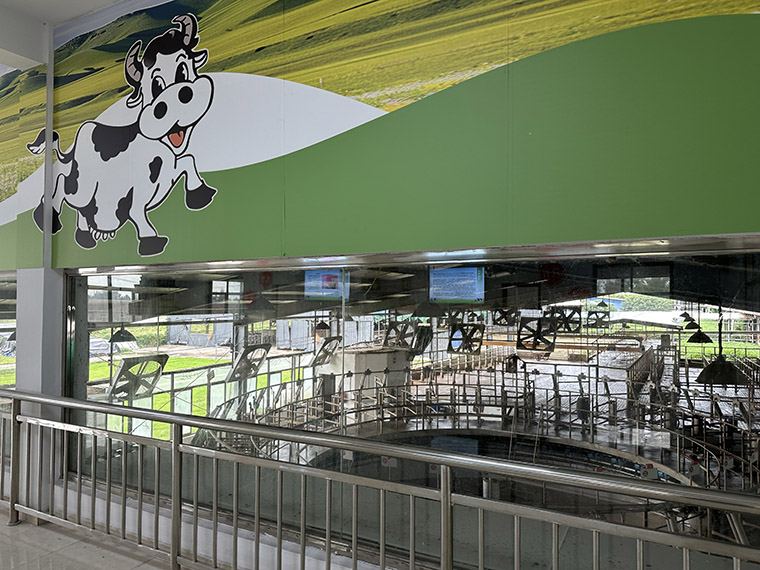 小楊社區(qū)黨委書記王政說,這里原是幾條廢棄河溝和荒地,2022年開始復墾整治,村集體投入200萬元、企業(yè)配套100萬元,村企共同打造“菇菇部落”項目,游客在科普、生產(chǎn)、制作、游玩四個區(qū)域,可以享受看菇、聽菇、玩菇、吃菇、購菇“一條龍”體驗。該項目還被評為省中小學生勞動教育與綜合實踐優(yōu)秀基地。 今年,“菇菇部落”升級了菌棒制作區(qū)和田間課堂,優(yōu)化科普研學、休閑觀光、農(nóng)耕體驗等新功能,自2022年9月建成后,累計開展研學活動100多場次,接待學生2萬多人次。 奶牛場打造“探鮮奶吧” “從這里可以看到奶牛場制奶全過程,甚至聞到奶味清香。”10月24日,在姜堰區(qū)大倫鎮(zhèn)土山村奶牛場內(nèi),土山村村委會副主任施冬梅介紹奶牛場研學基地改造情況。
