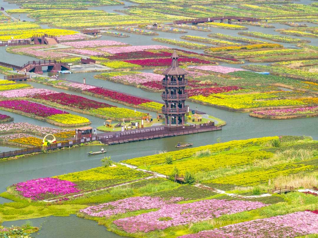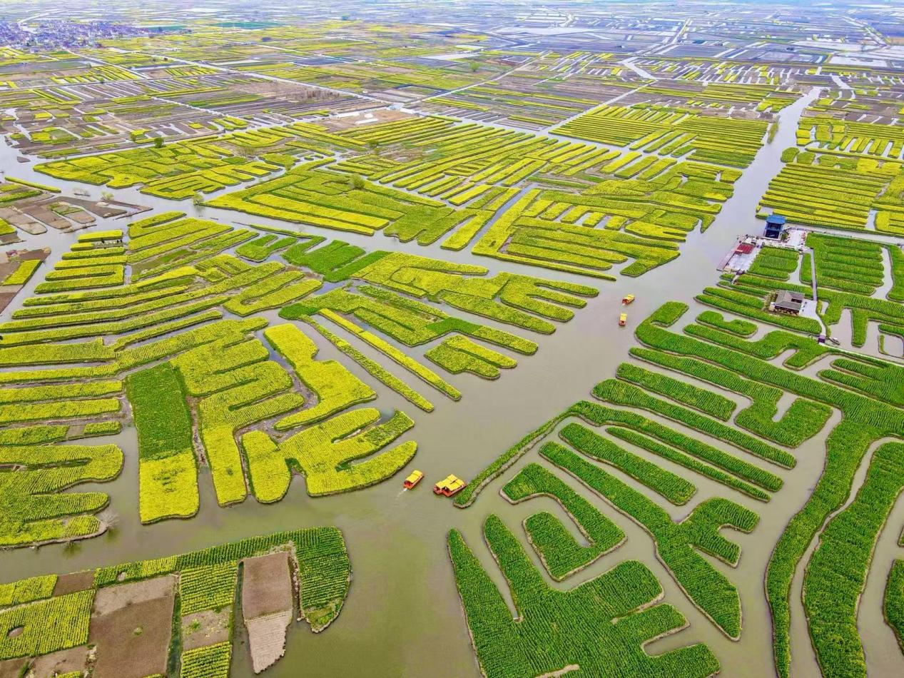 自被選定為首批生態(tài)產(chǎn)品價(jià)值實(shí)現(xiàn)機(jī)制試點(diǎn)以來(lái),興化市憑借優(yōu)越的自然資源稟賦和生態(tài)條件,致力于開(kāi)辟一條發(fā)展與保護(hù)和諧共存的新道路,既守護(hù)“綠水青山”,又贏得“財(cái)富之源”。 以垛田為基,探尋農(nóng)業(yè)經(jīng)濟(jì)新篇 金色的油菜花在垛田里搖曳生姿,乘一艘搖櫓船,在花海間穿越前行,是興化獨(dú)一份的浪漫。 以花為媒,歷經(jīng)16年接力打造,興化巧妙將油菜花海與垛田風(fēng)貌完美融合,形成了“花開(kāi)垛上、垛在花間、碧水縈繞、金黃無(wú)邊”的奇景,借助如網(wǎng)的水系,油菜花海被分割成一塊塊方田,花田、湖中小島、流水、搖櫓船交織在一起,織就了一幅金黃色的春日畫(huà)卷。
